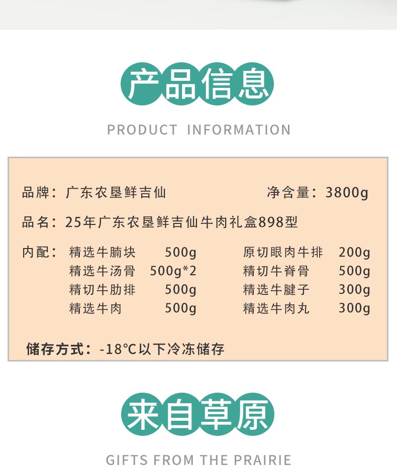 商品名称:【顺丰配送】廣東農垦鲜吉仙25年草原牛肉礼盒898型3800g