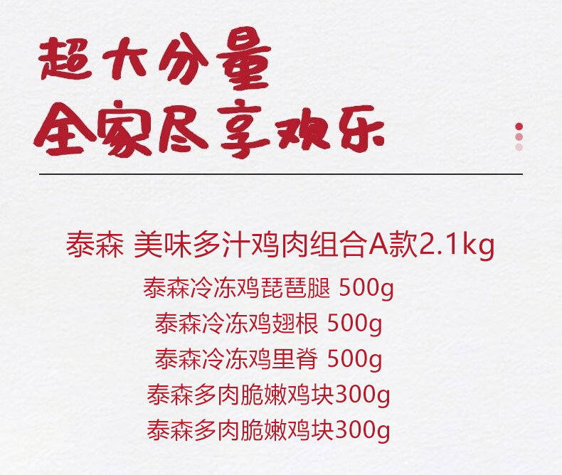 商品名称:【京东/顺丰配送】泰森美味多汁鸡肉生鲜组合A款2100g