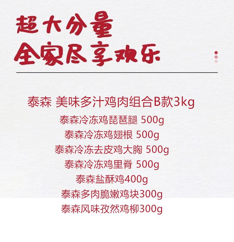 商品名称:【京东/顺丰配送】泰森美味多汁鸡肉生鲜组合B款3kg