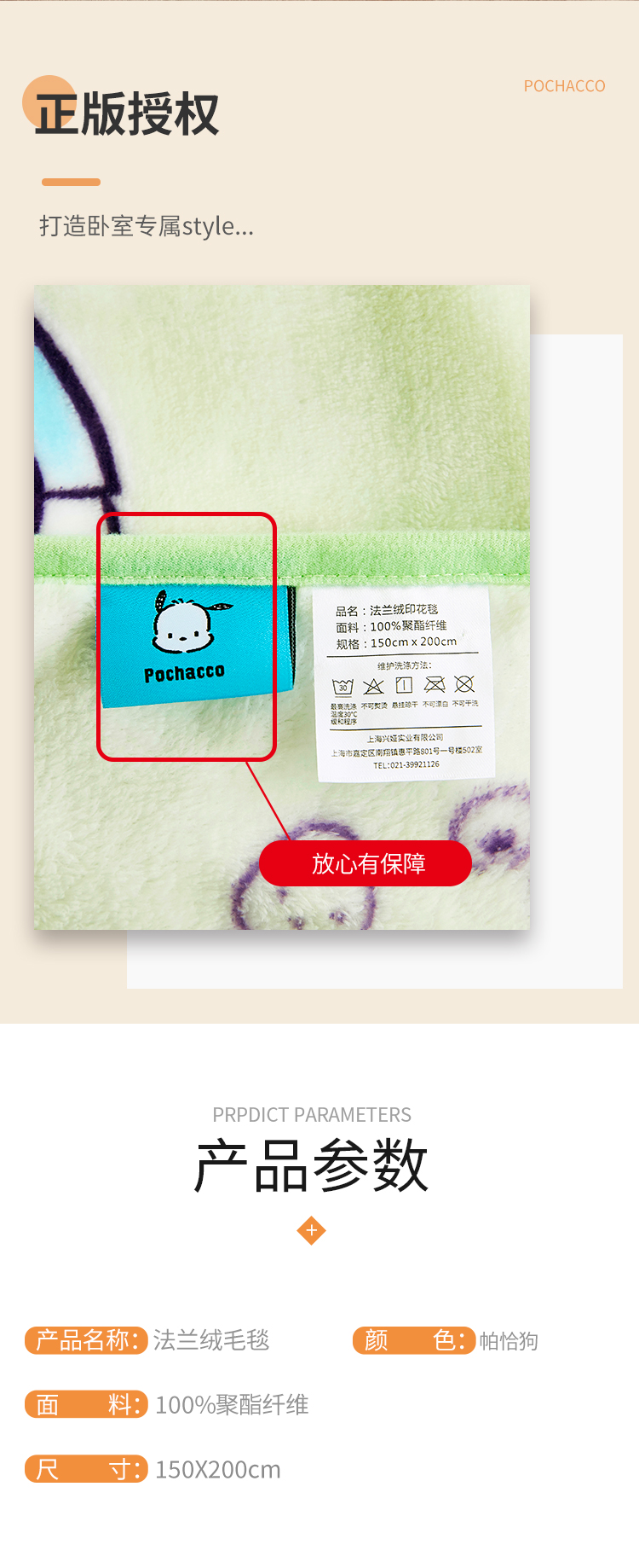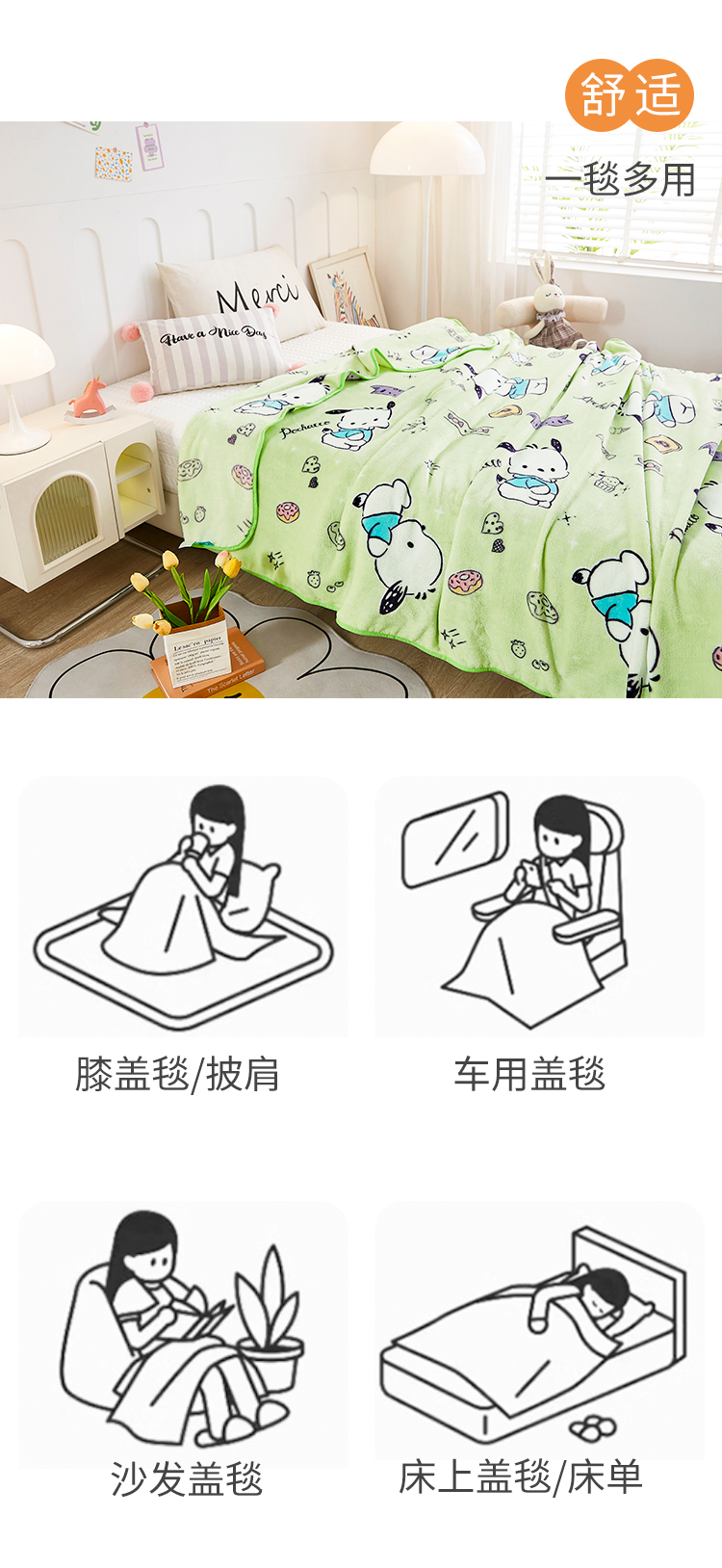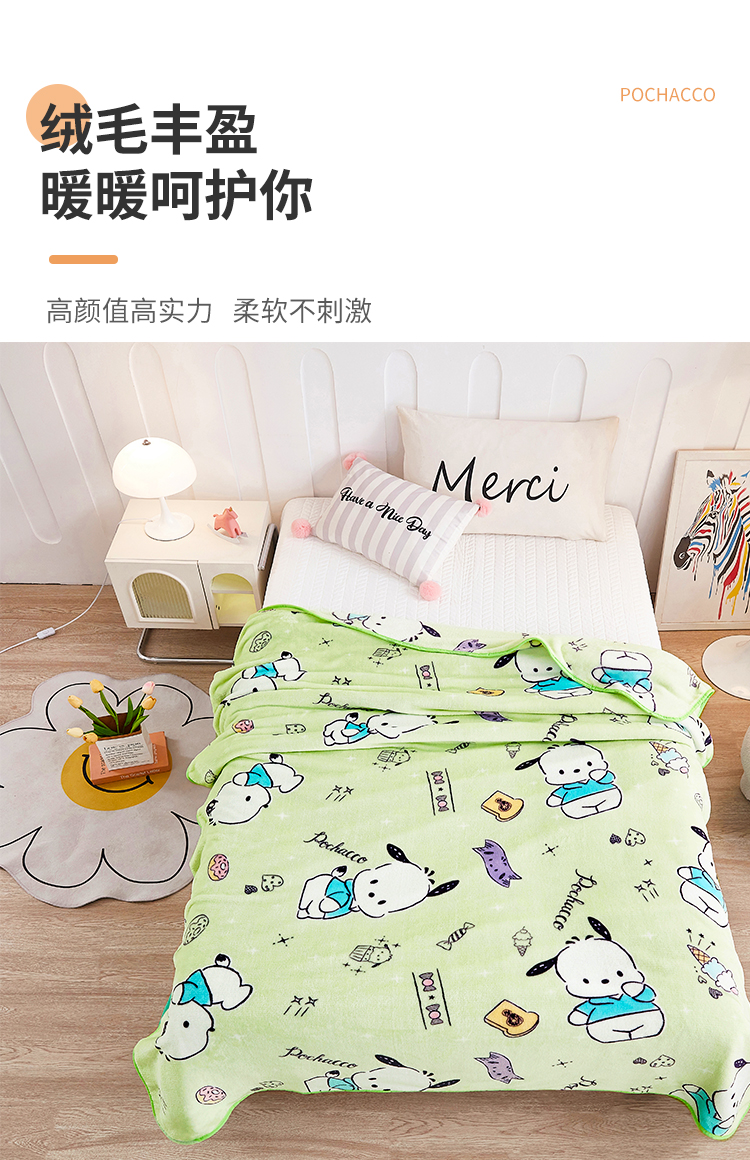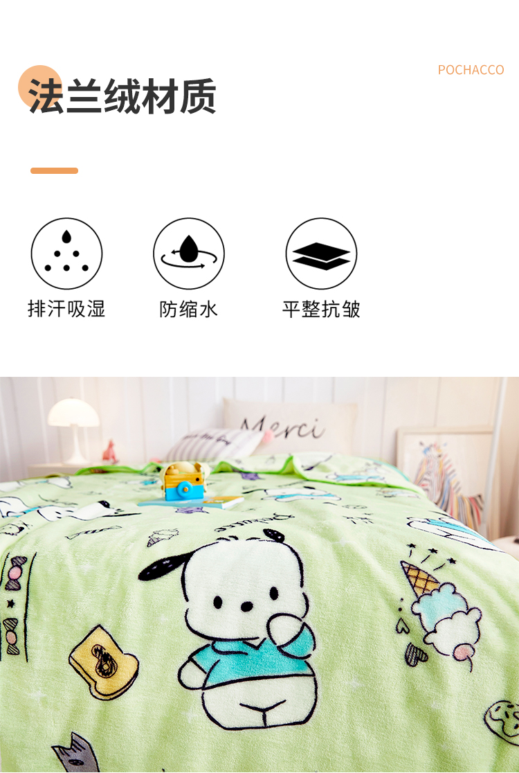 商品名称:Sanrio/三丽鸥帕恰狗法兰绒超柔毯150*200cm 0.75kg