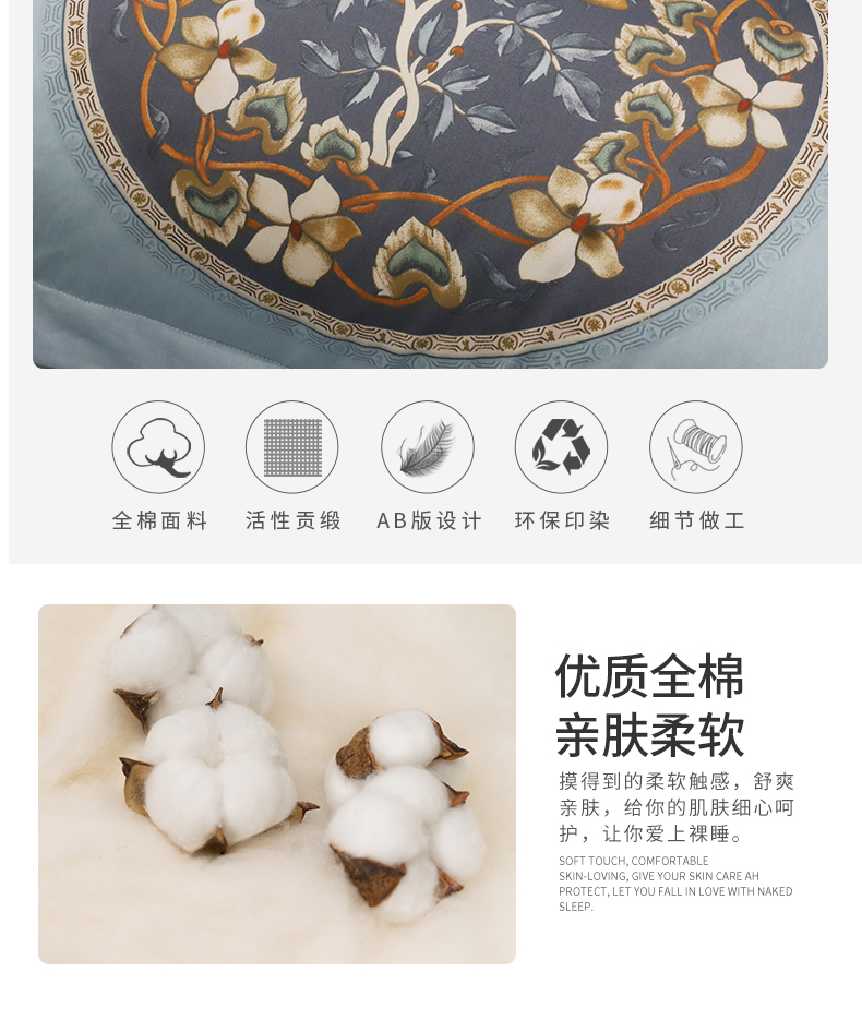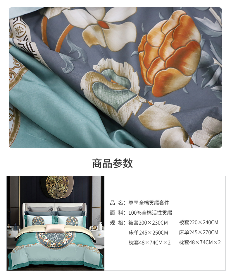 商品名称:KINTHERI/金丝莉倾城尊享全棉贡缎床品四件套