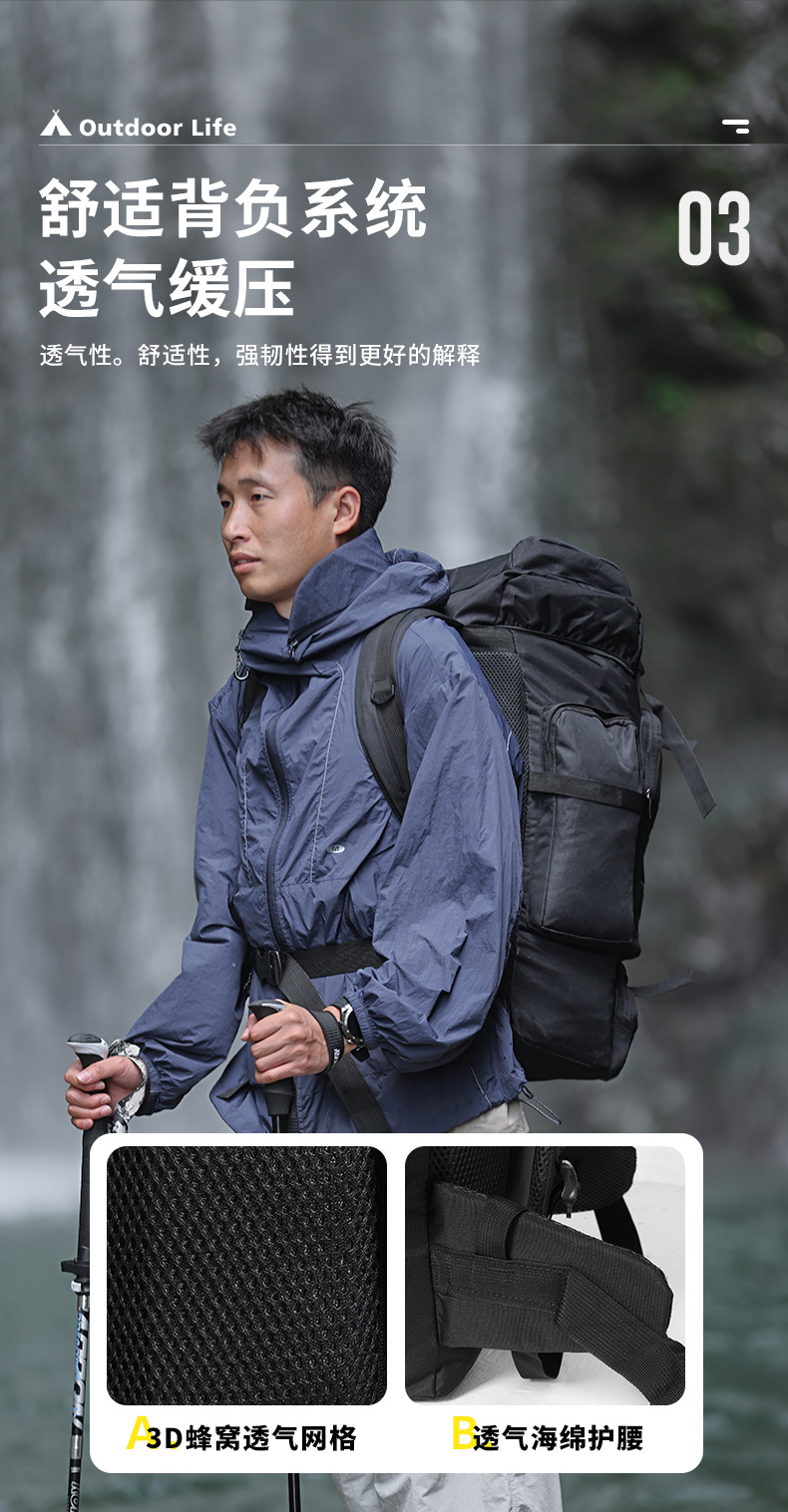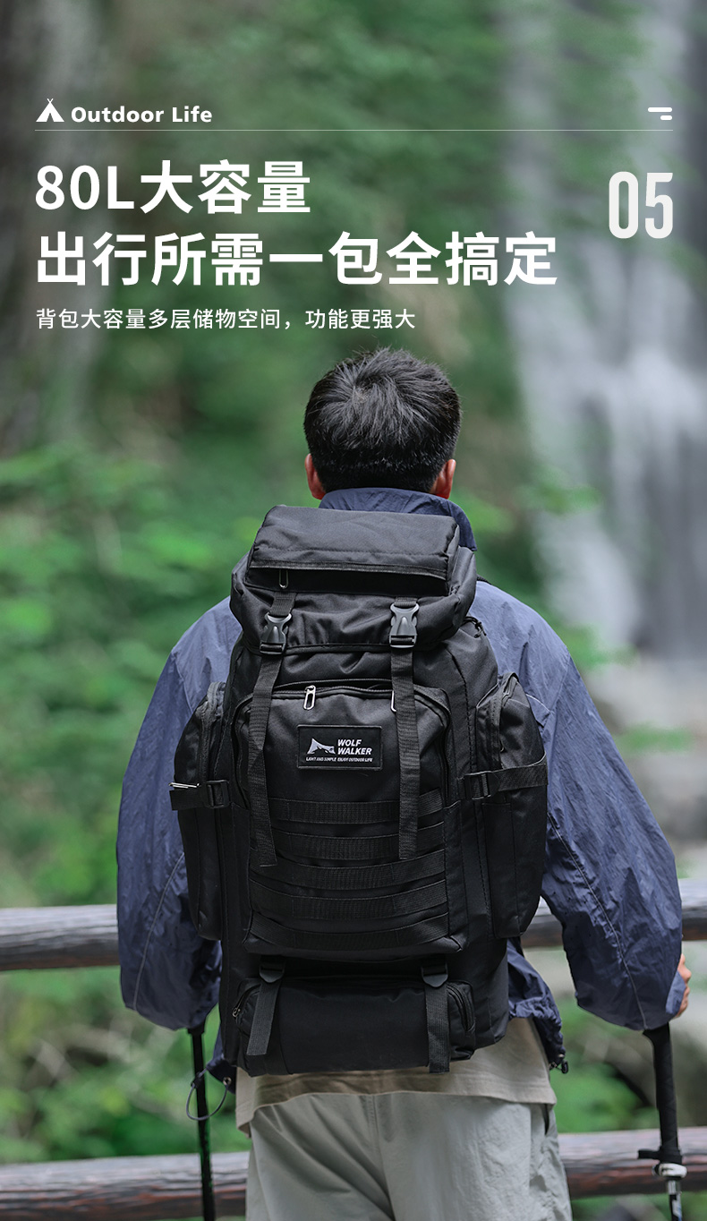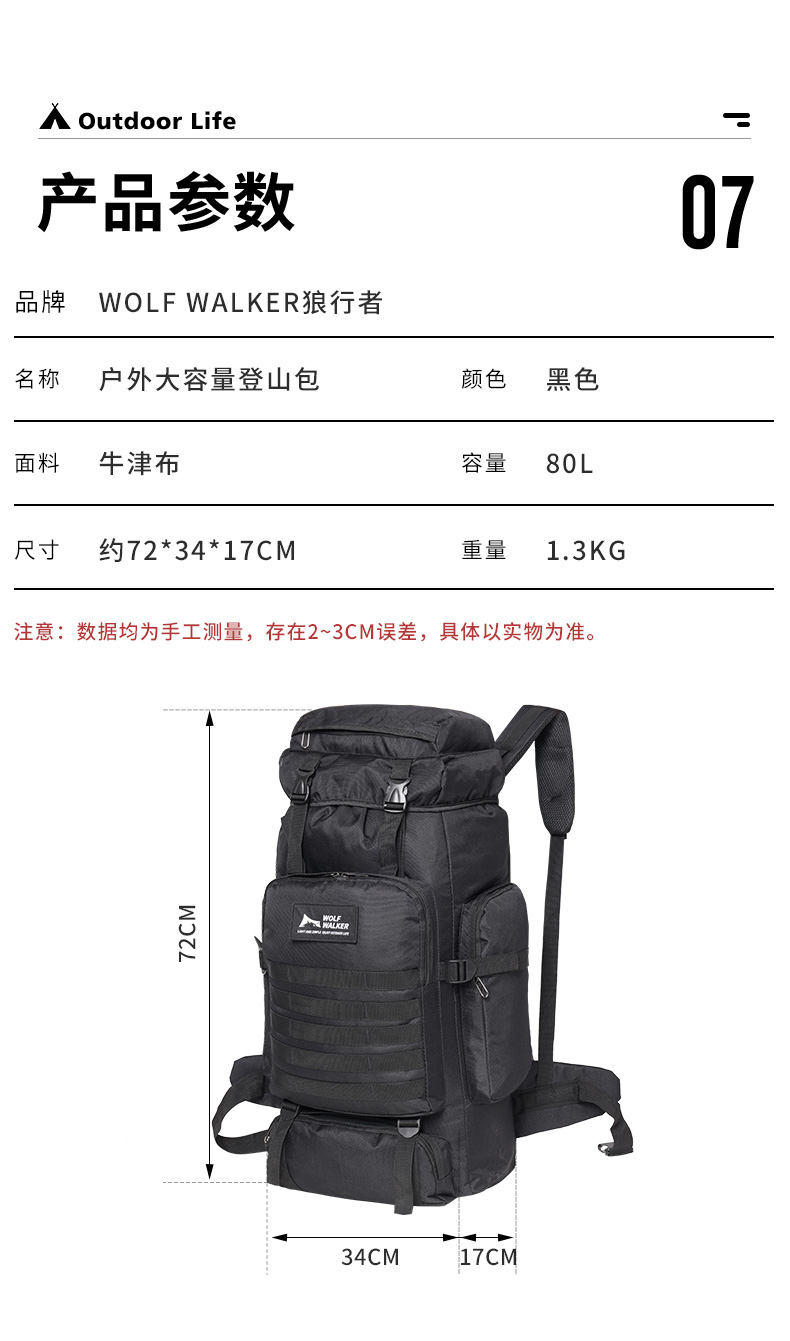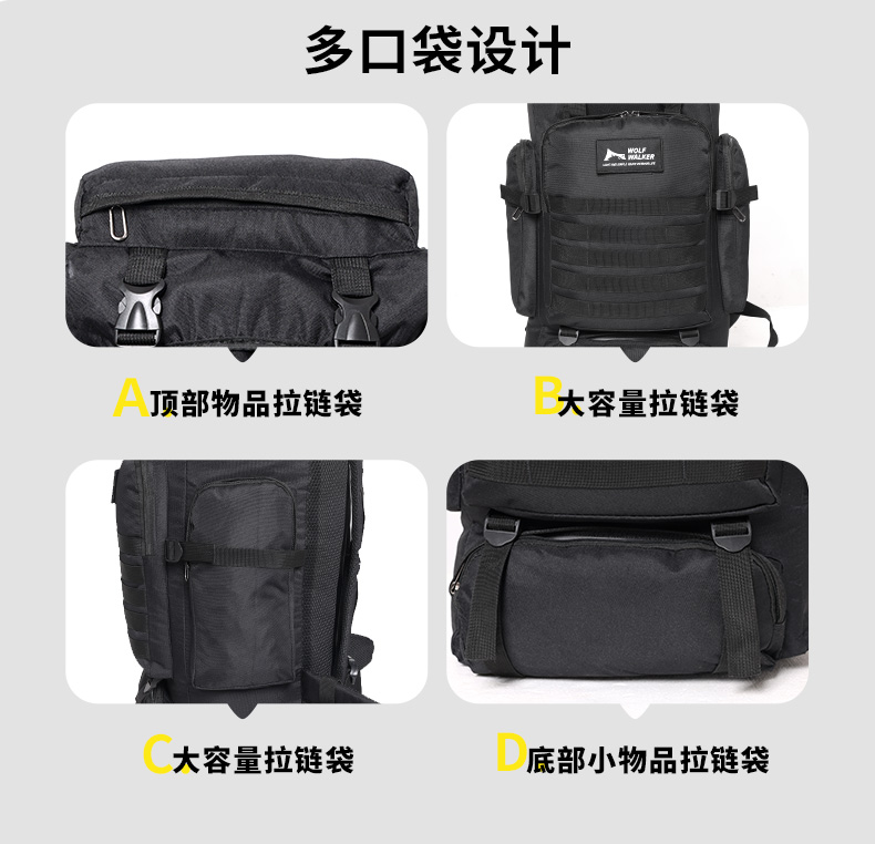 商品名称:WOLF WALKER/狼行者户外登山双肩包-黑色lxz-3225-1118