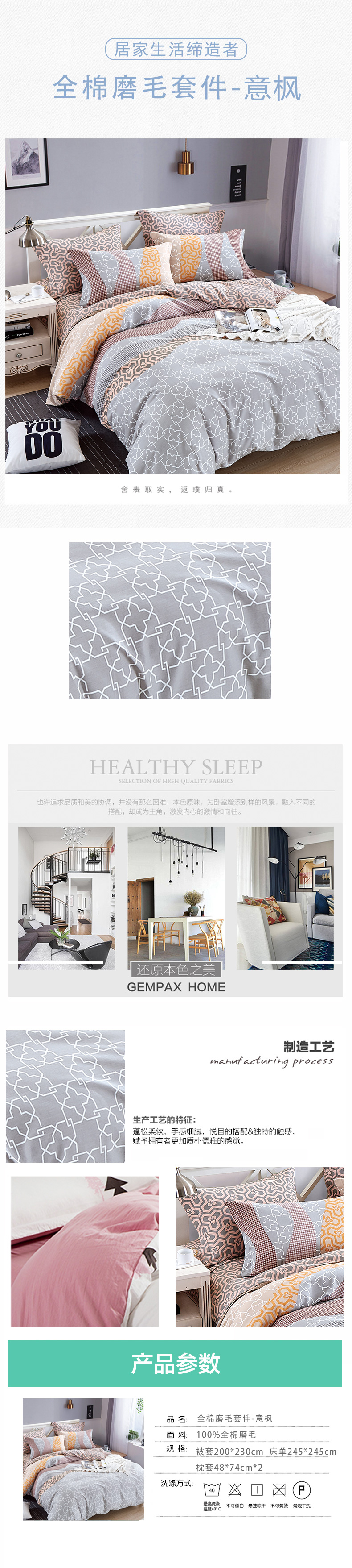 商品名称:KINTHERI/金丝莉意枫抗菌全棉磨毛床品四件套200*230cm
