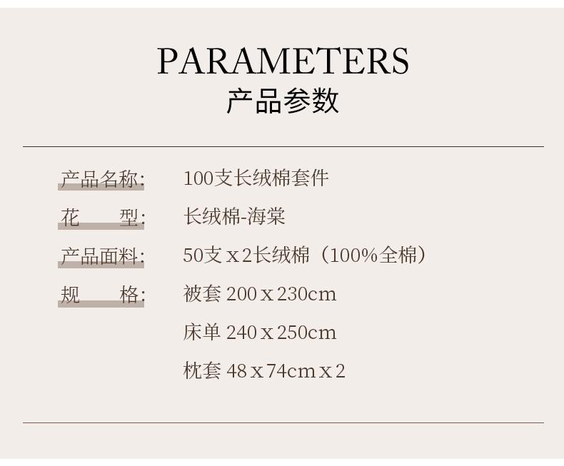 商品名称:KINTHERI/金丝莉海棠100支长绒棉床品四件套200*230cm