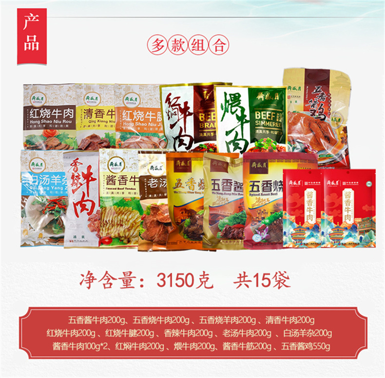 商品名称:【京东/德邦配送】月盛斋清真伊路香随牛羊肉熟食礼盒B款3150g