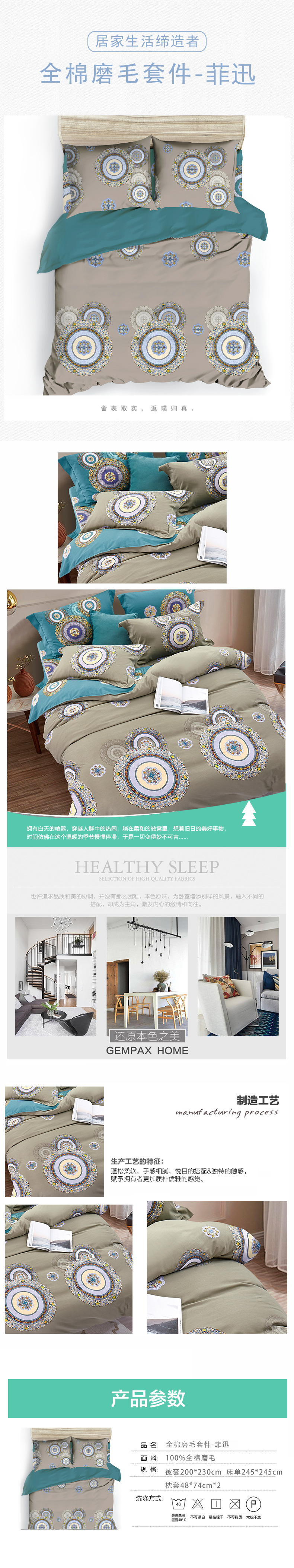 商品名称:KINTHERI/金丝莉菲迅抗菌全棉磨毛床品四件套200*230cm