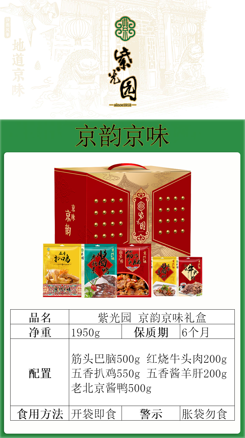商品名称:【京东/德邦配送】紫光园清真京韵京味熟食礼盒1950g