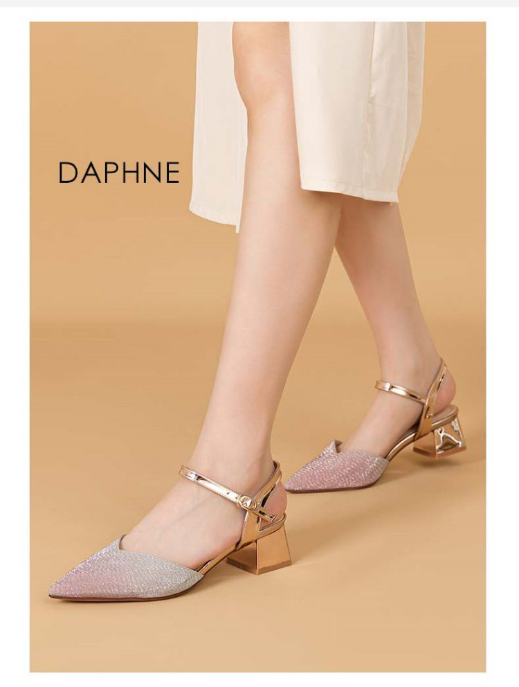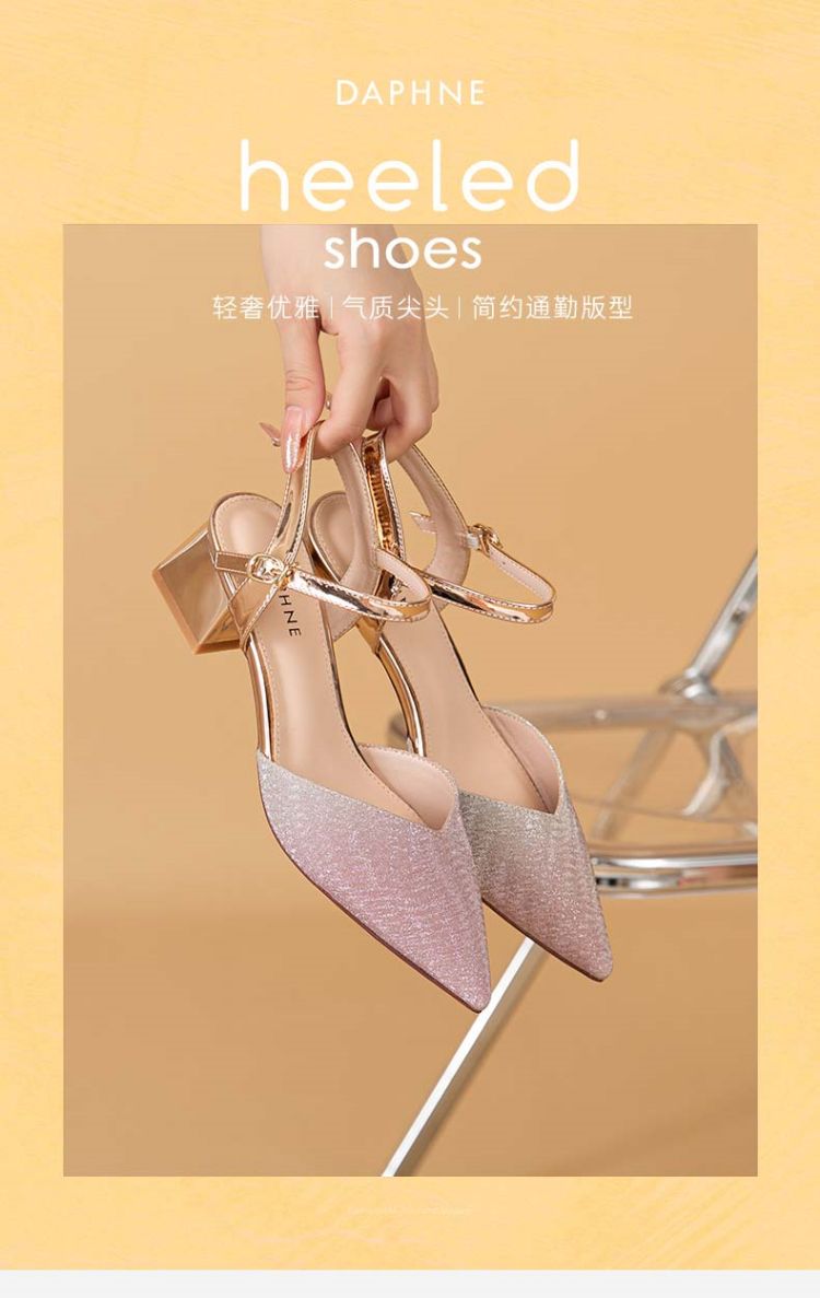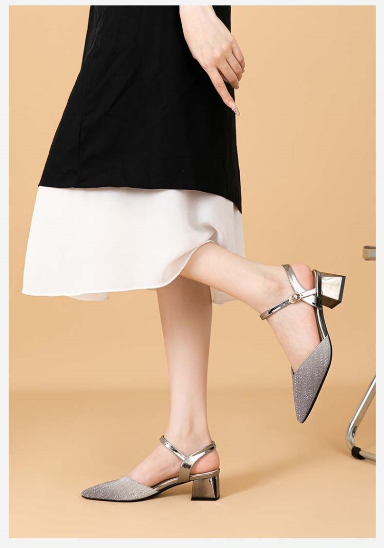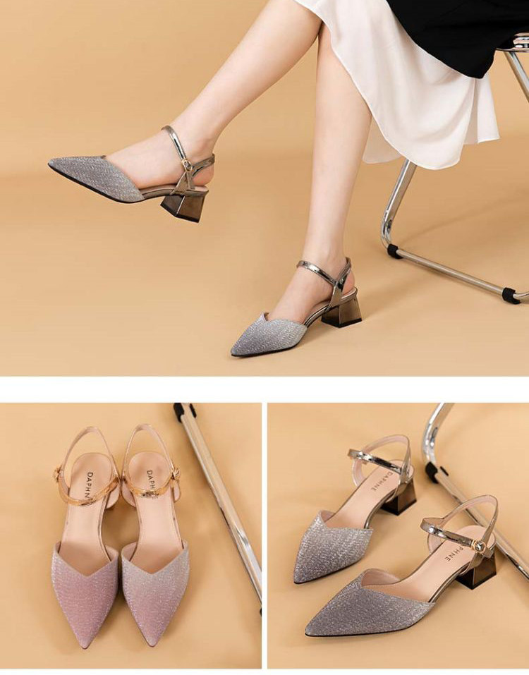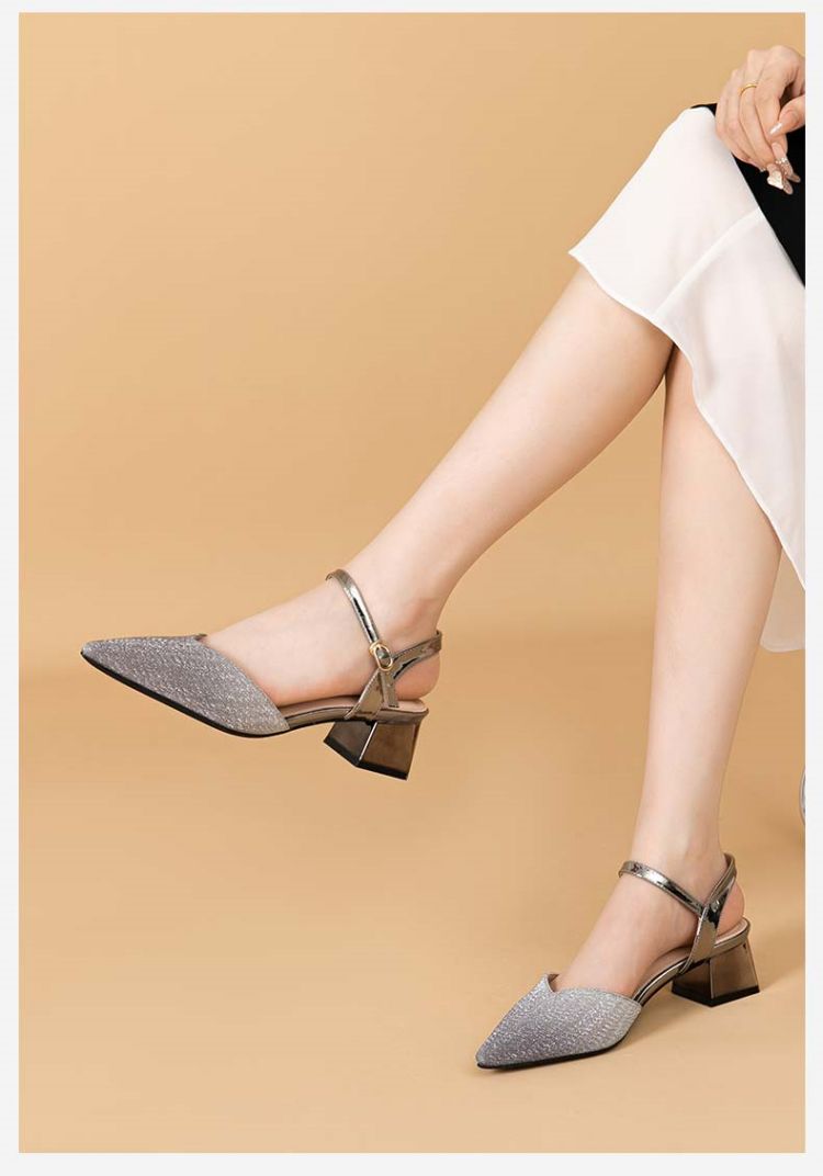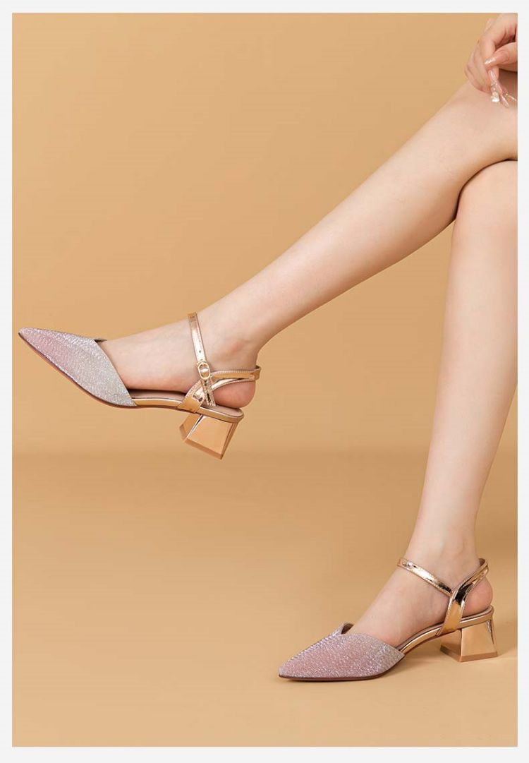 商品名称:【热卖爆款】夏季一字带高跟凉鞋尖头渐变闪钻粗跟舒适中空凉鞋 950807