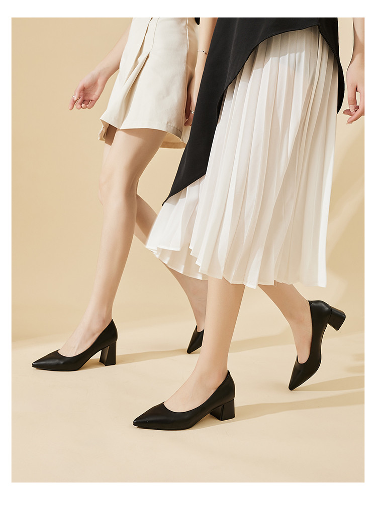 夏季粗跟女单鞋时装鞋复古简约日常休闲鞋百搭通勤鞋 959127