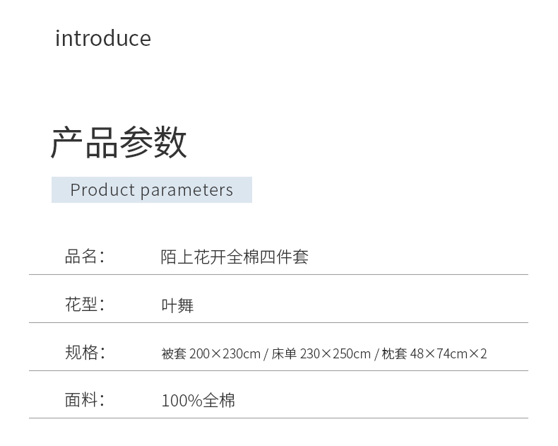 商品名称:KINTHERI/金丝莉叶舞陌上花开全棉床品四件套200*230cm