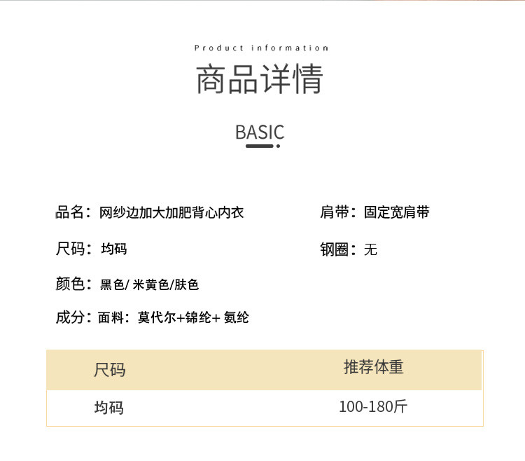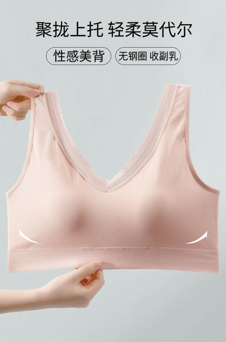 商品名称:【2025新款加大加肥】网纱边莫代尔无钢圈大码背心内衣文胸罩 366558