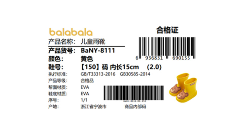 商品名称:巴拉巴拉童鞋儿童雨靴男童女童可爱卡通鞋子小童夏季雨鞋时尚潮流 308613