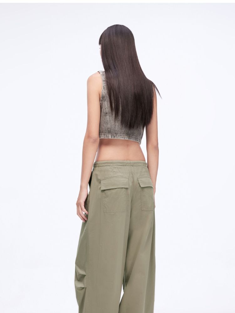商品名称:【工装伞裤】2025夏季宽松抽绳直筒裤长裤休闲裤女 636762