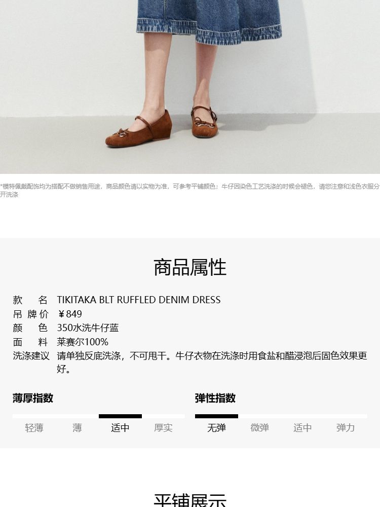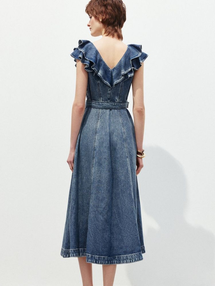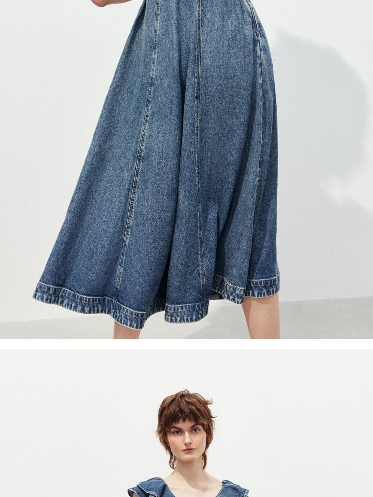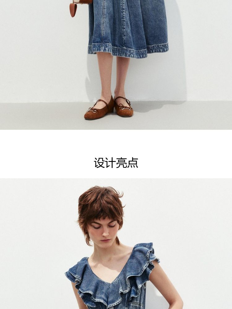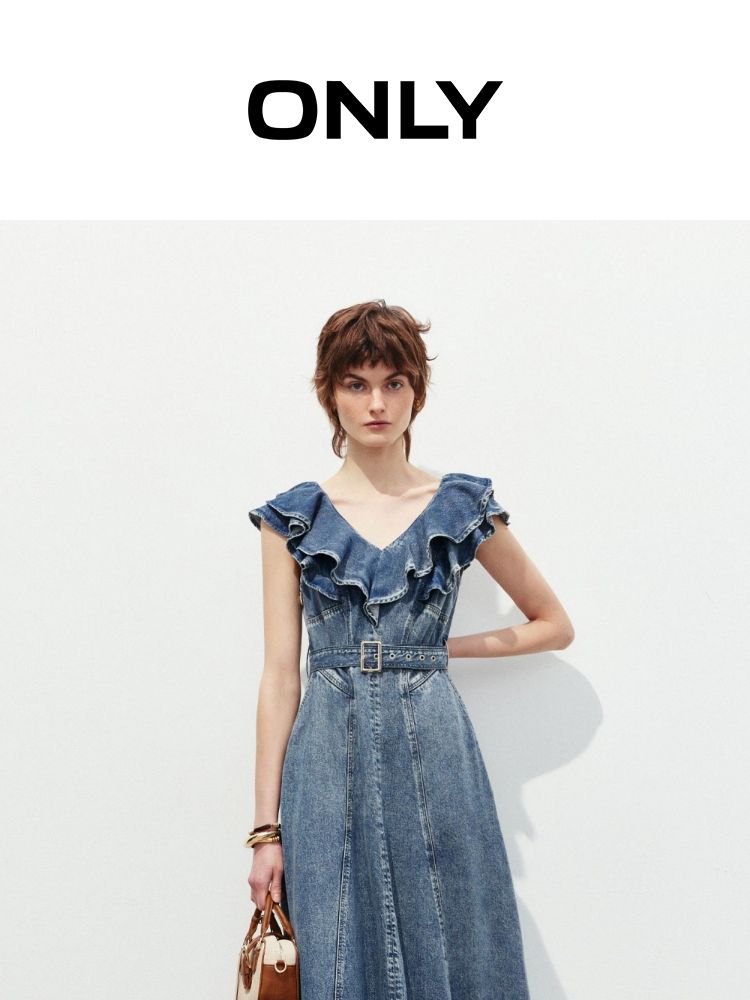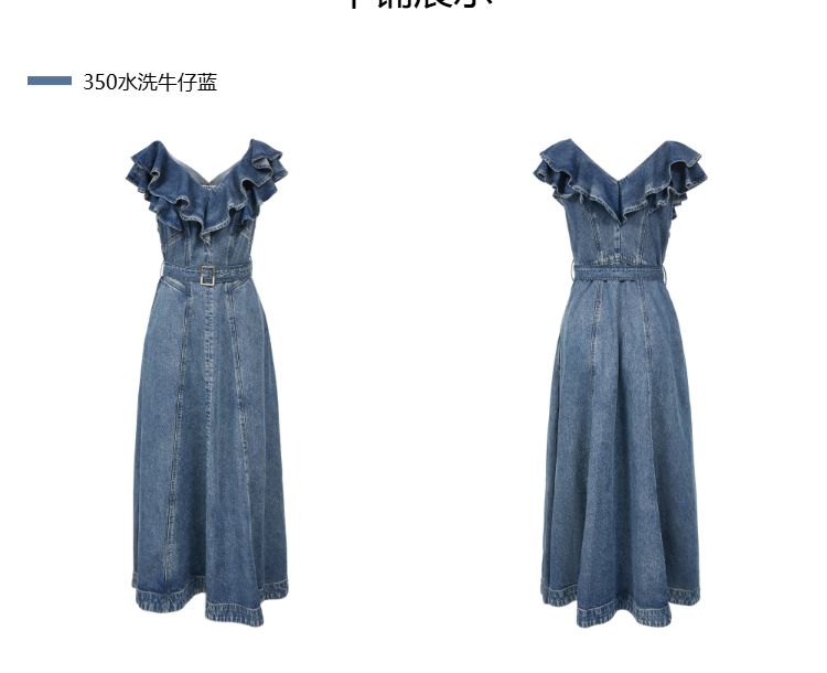商品名称:【莱赛尔面料】2025春季浪漫风荷叶边V领中长裙牛仔连衣裙女 913370