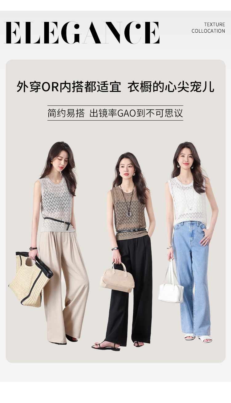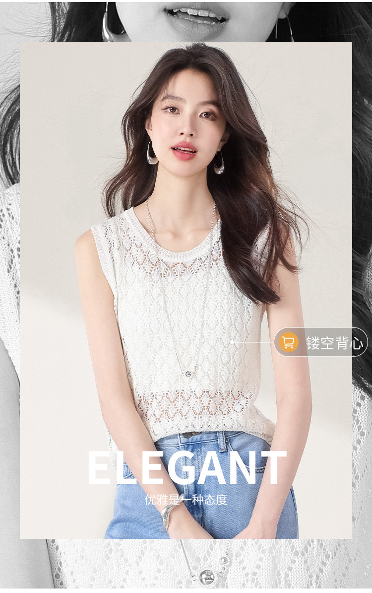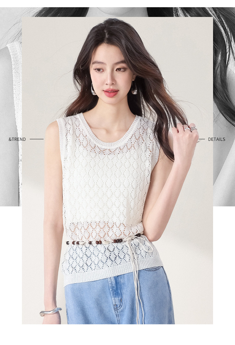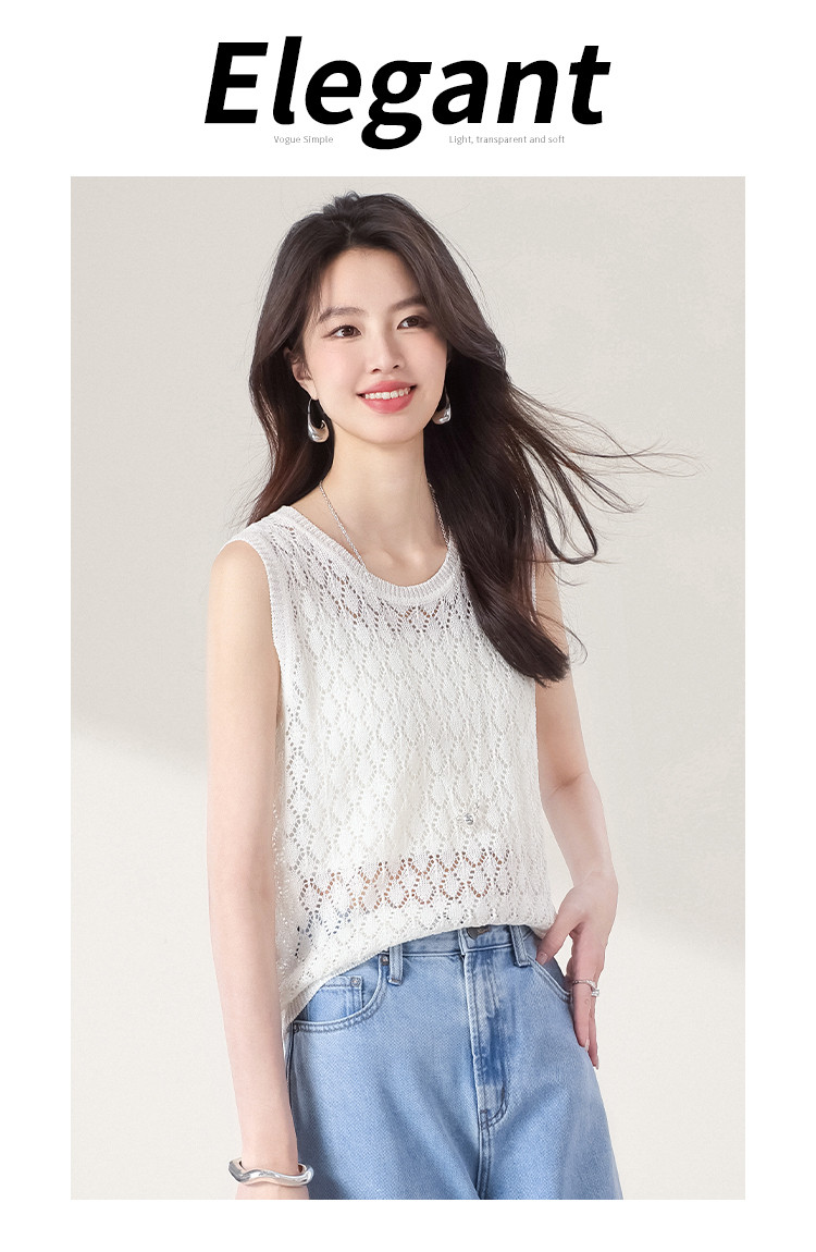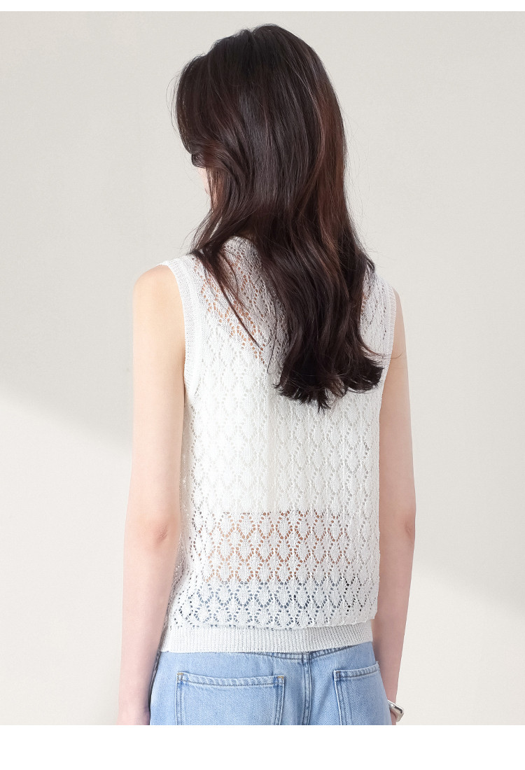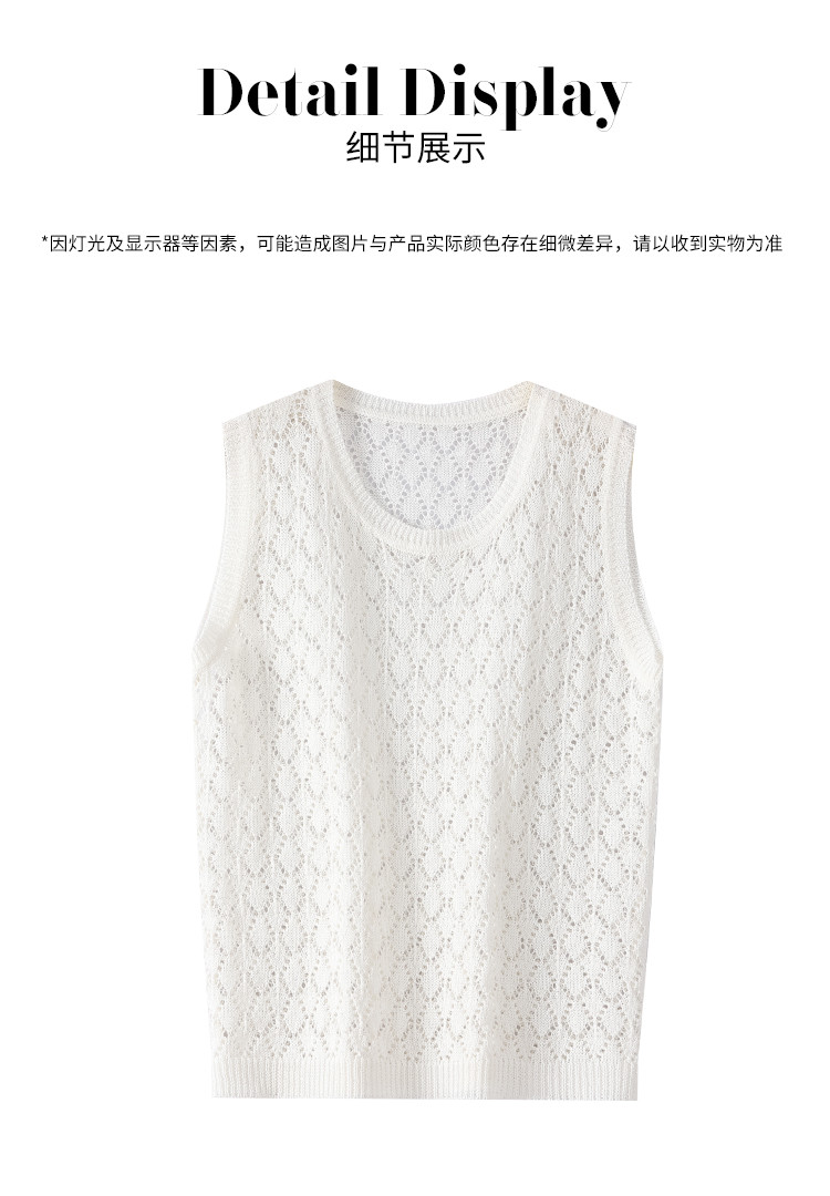 商品名称:【和纸纱】纯色镂空针织背心女含桑蚕丝马甲春夏薄款上衣 642643