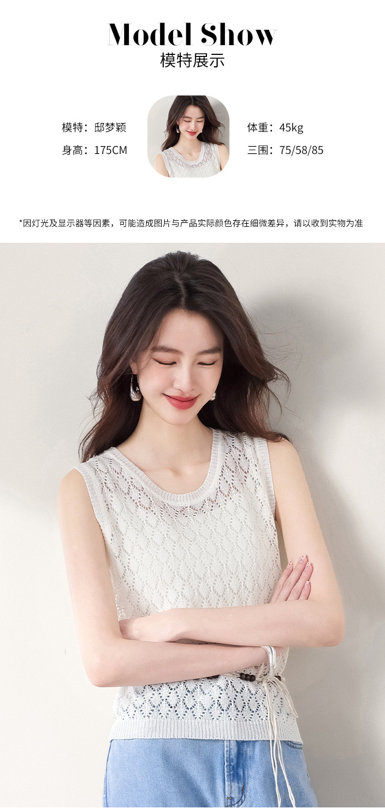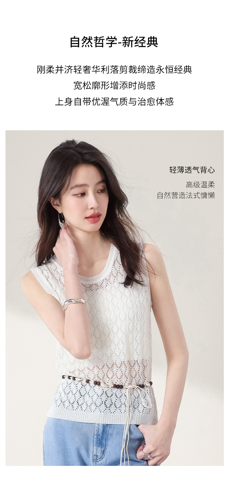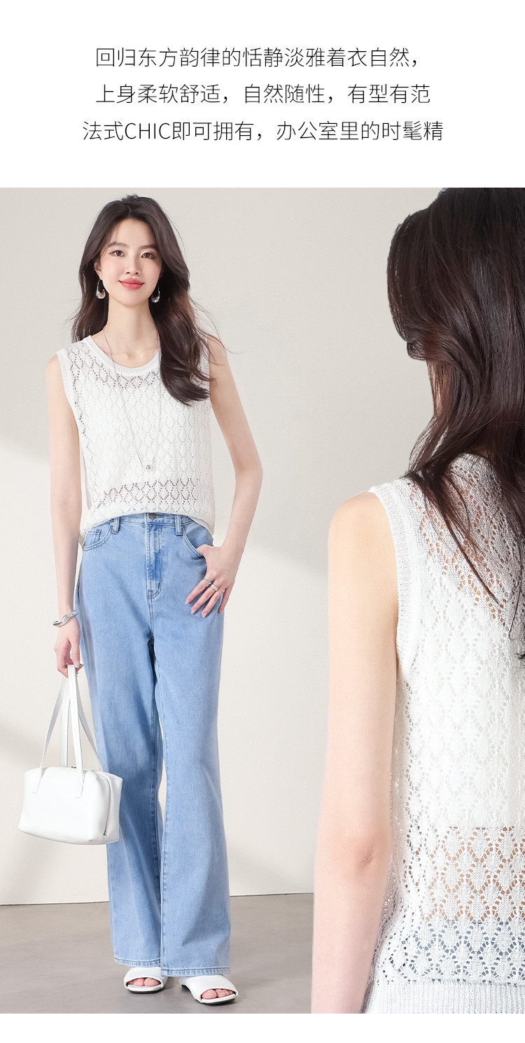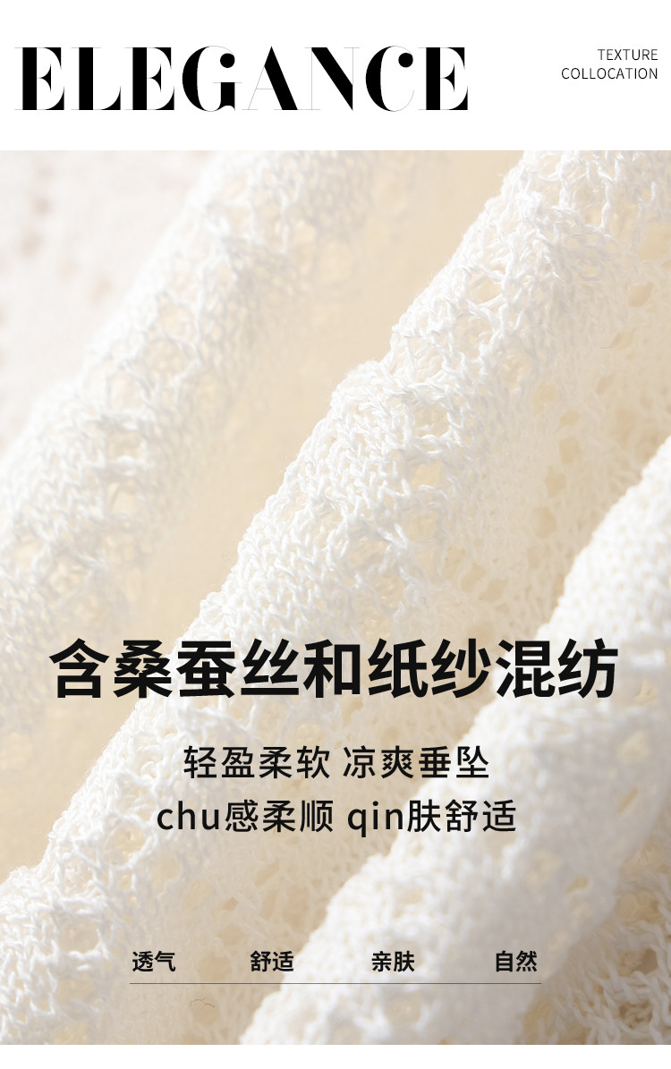 商品名称:【和纸纱】纯色镂空针织背心女含桑蚕丝马甲春夏薄款上衣 642643