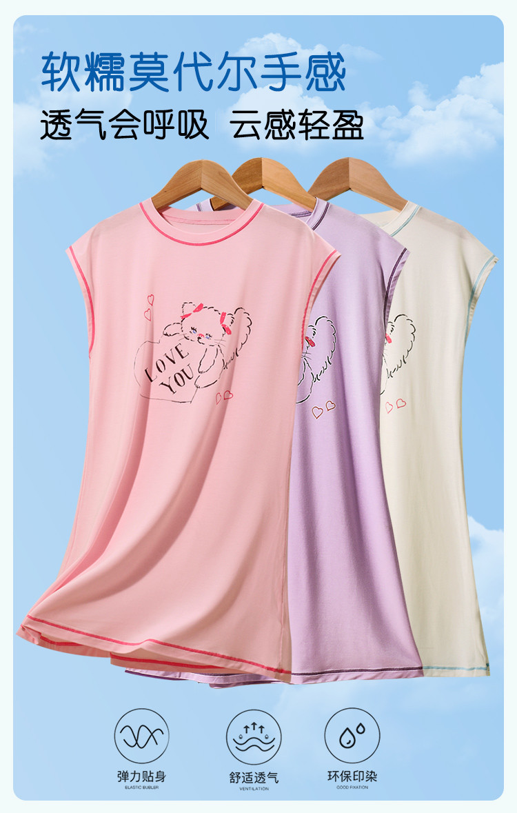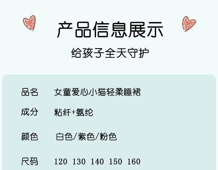 商品名称:【甜美风薄款睡裙】女童爱心小猫轻柔短袖家居服可外穿春夏睡衣 772062