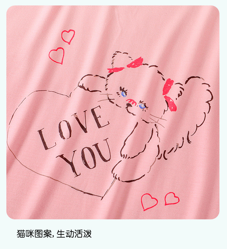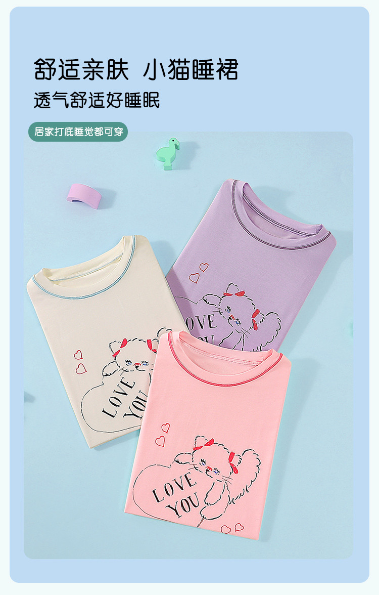 【甜美风薄款睡裙】女童爱心小猫轻柔短袖家居服可外穿春夏睡衣 772062