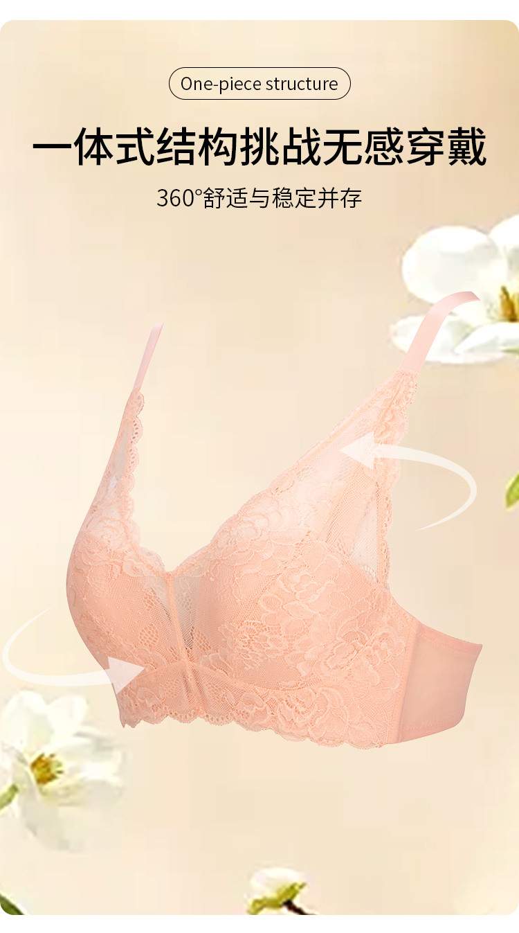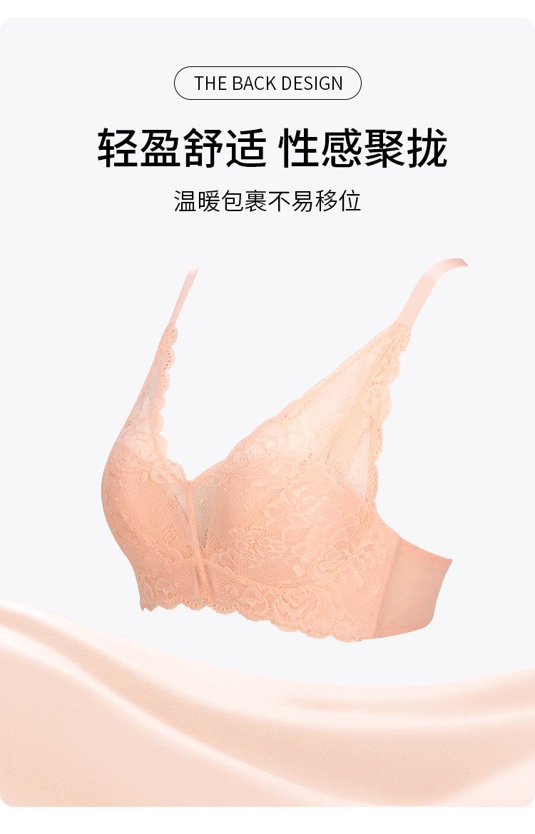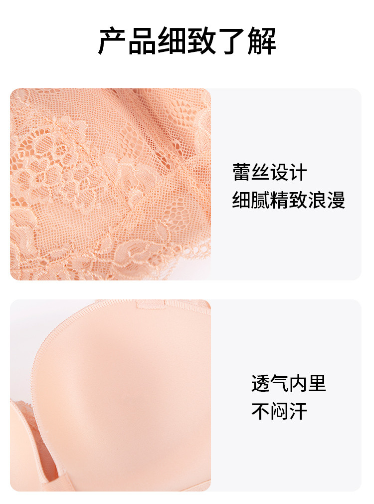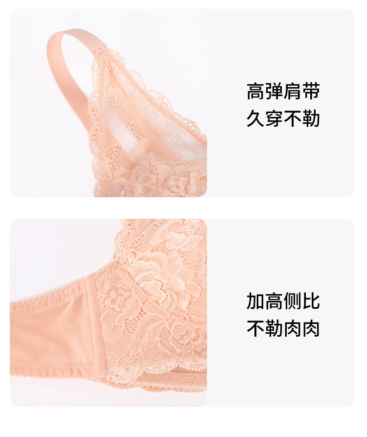 商品名称:小胸聚拢不空杯防下垂收副乳薄模杯无钢圈蕾丝内衣女士胸罩文胸 743819