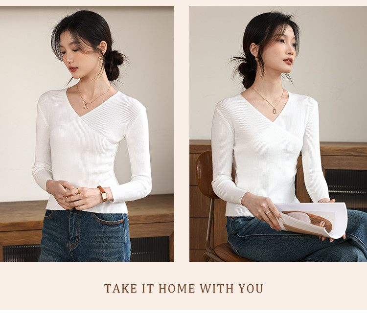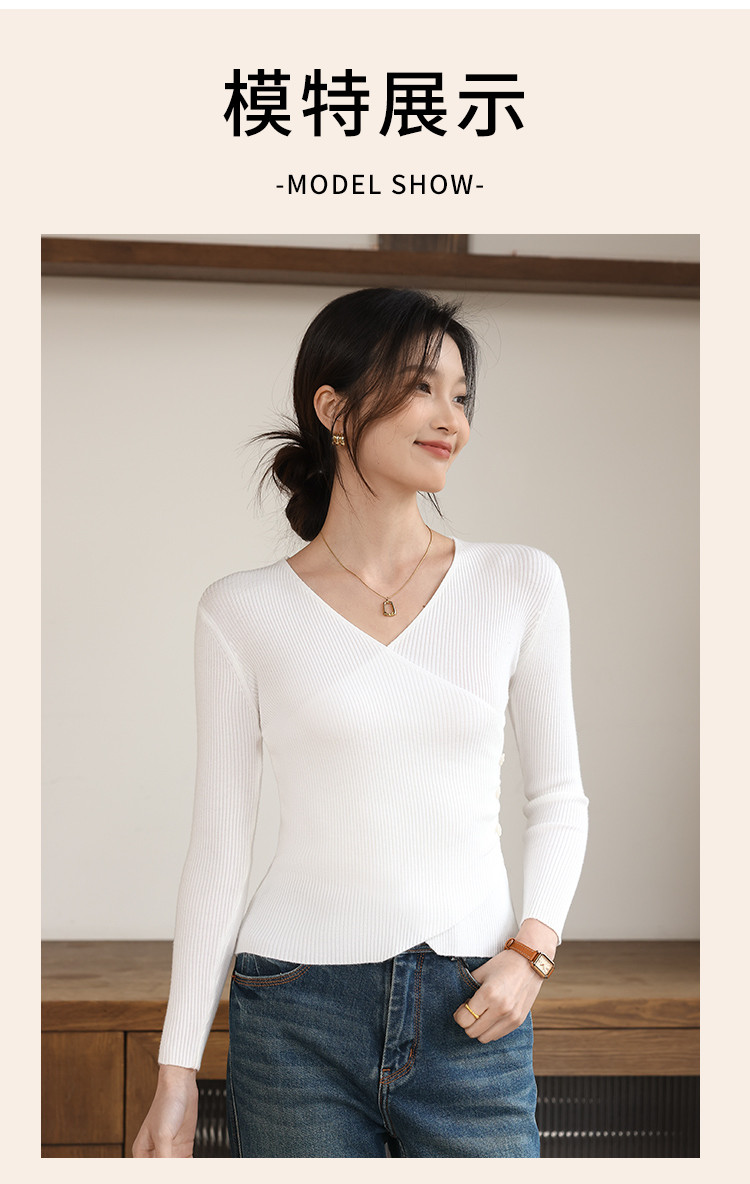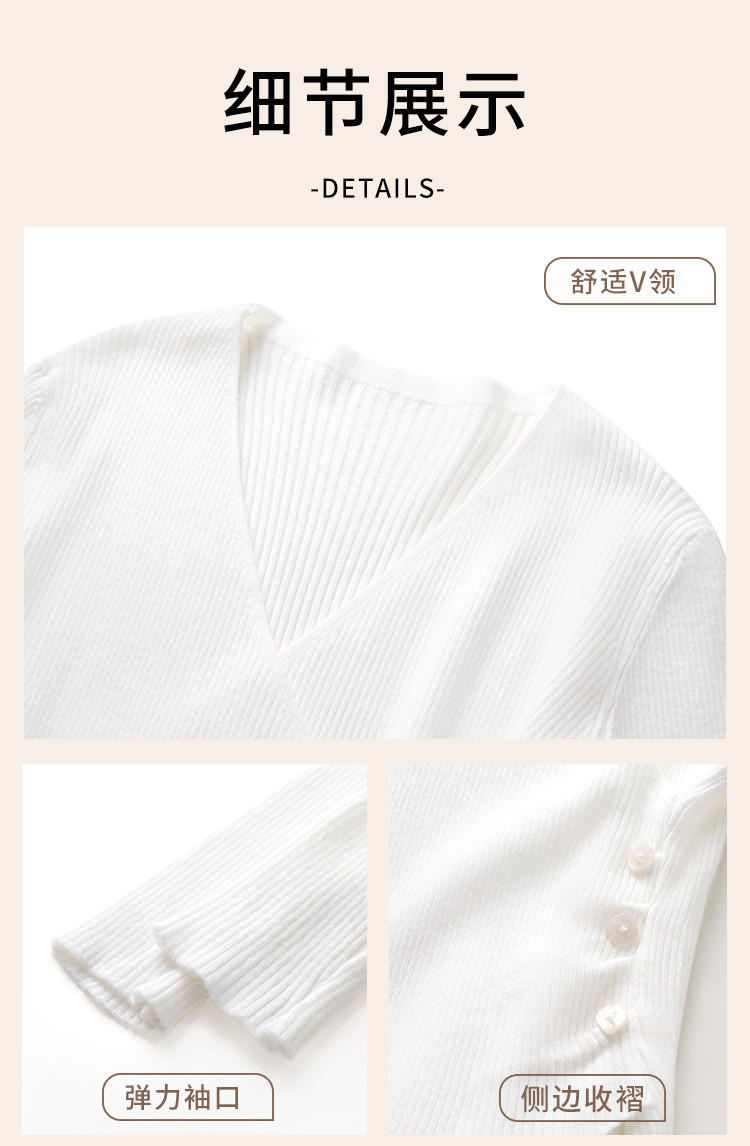 商品名称:纯欲紧身V领显瘦长袖女春秋打底衫简约气质内搭显身材打底上衣女 700107