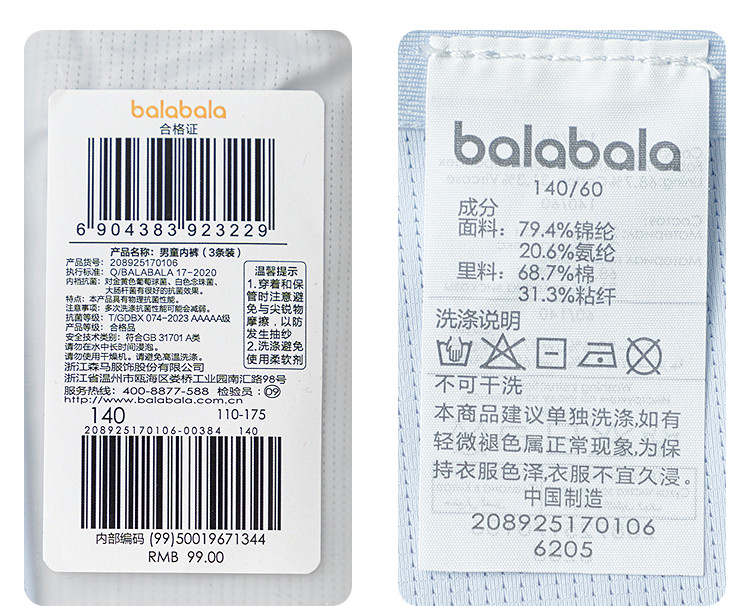 商品名称:5A抑菌儿童内裤成长期男童平角裤四角短裤不夹PP中大童三条装 385669