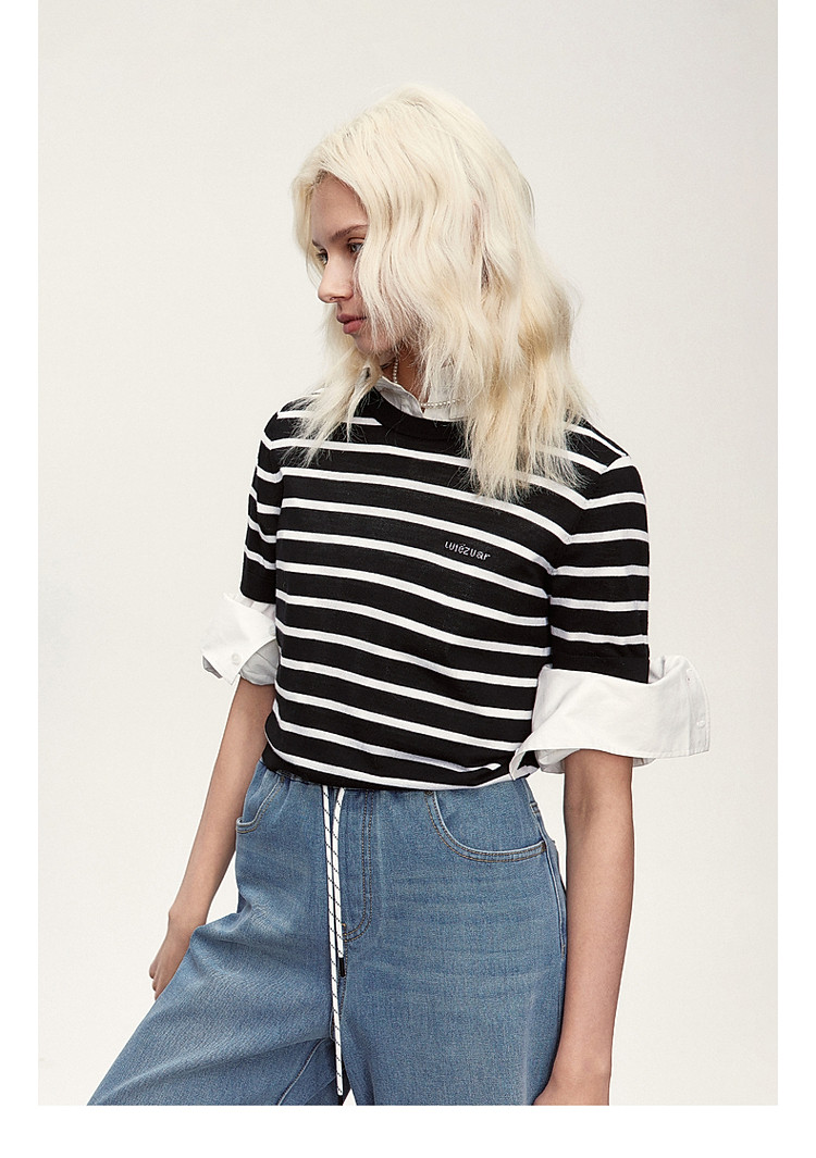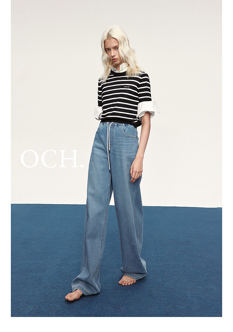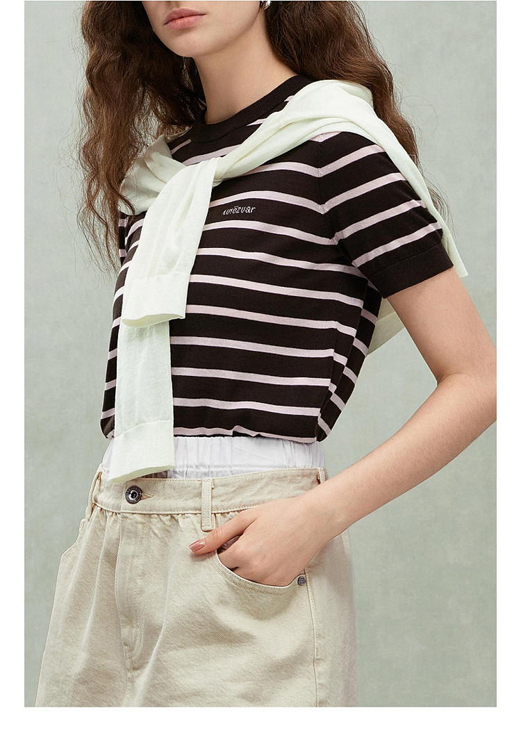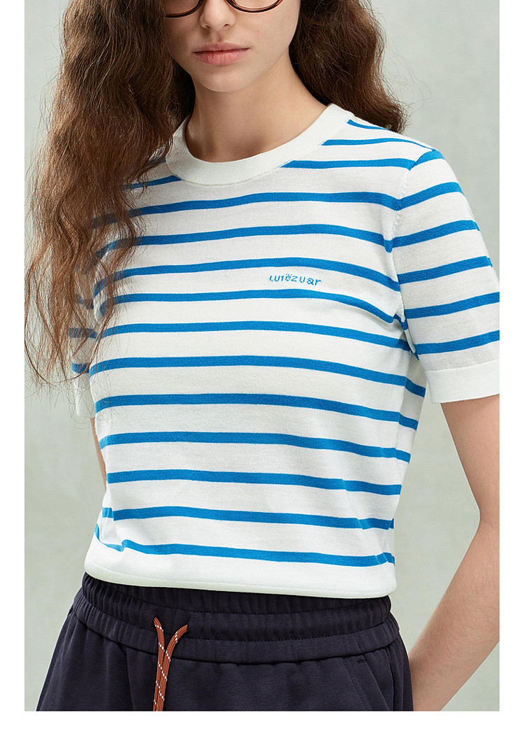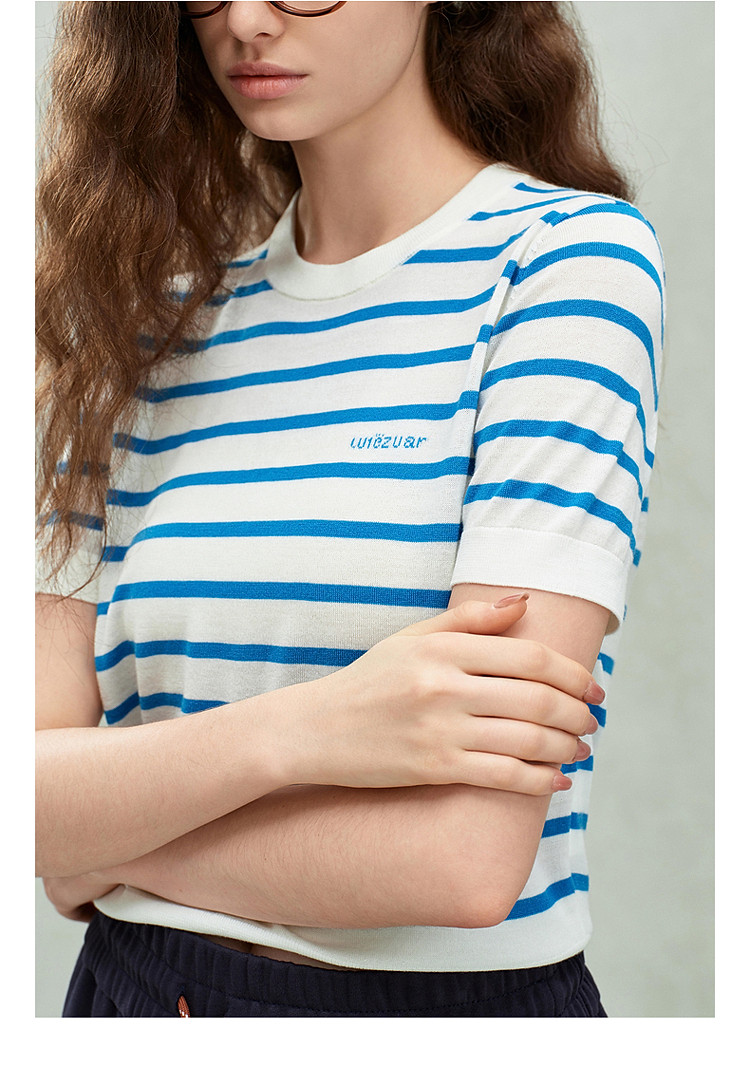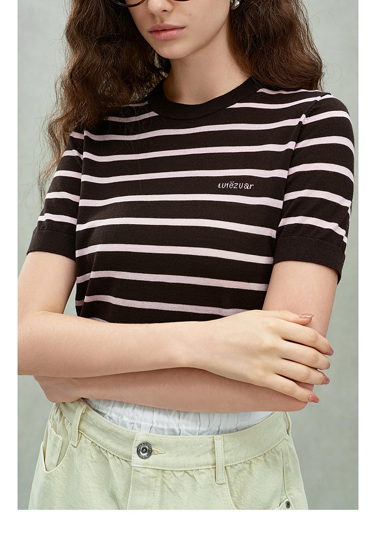 限定系列OCH.春装 可机洗进口100%羊毛条纹短袖针织毛衣 243983