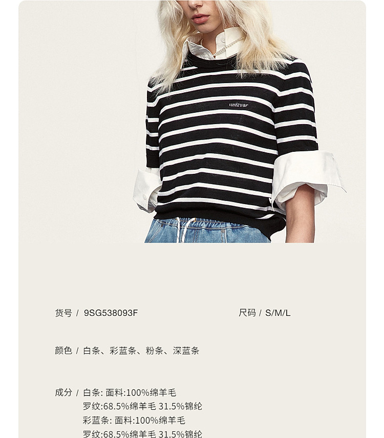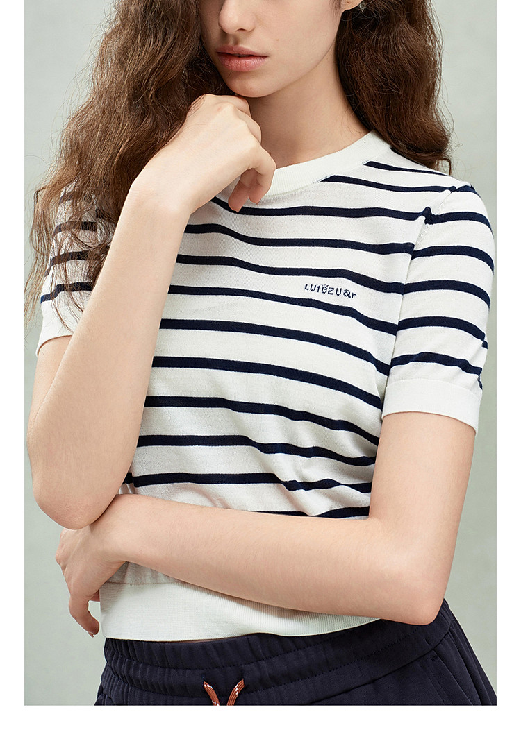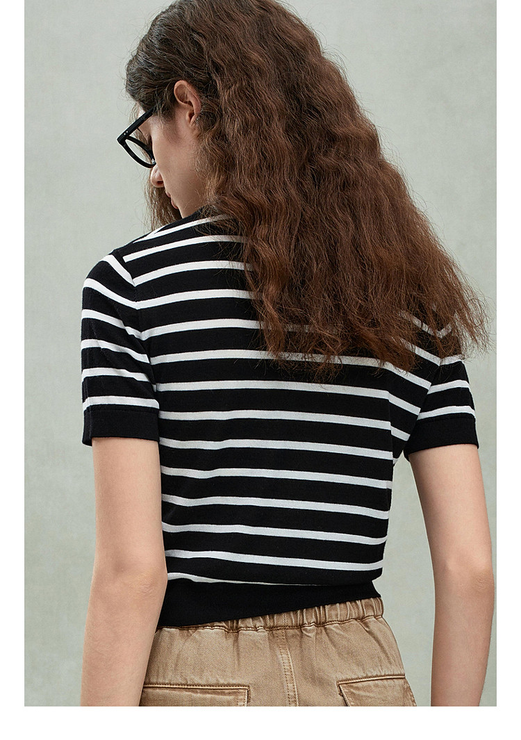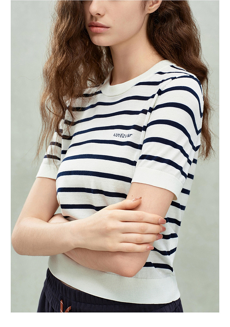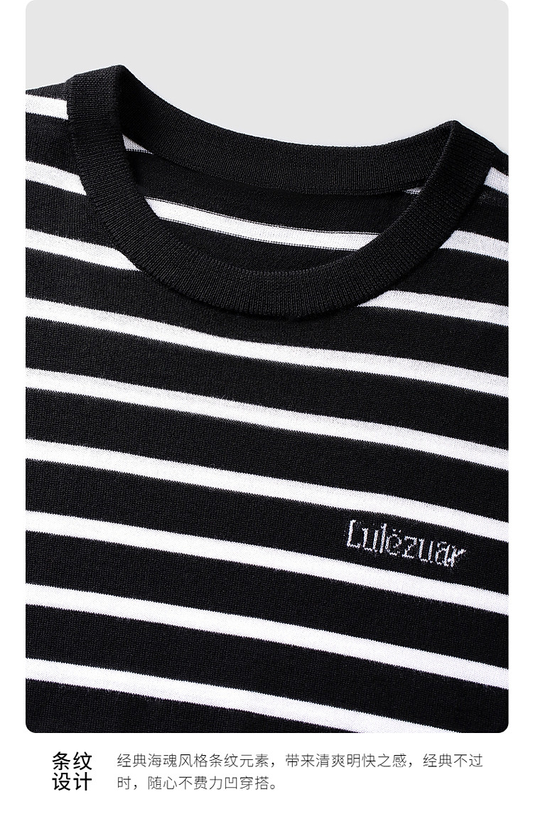 商品名称:限定系列OCH.春装 可机洗进口100%羊毛条纹短袖针织毛衣 243983