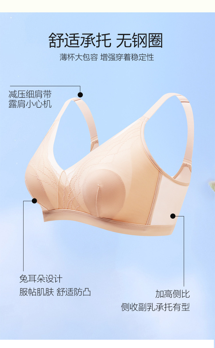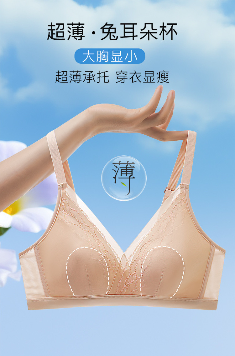 商品名称:【轻薄透气兔耳朵】性感防凸点大胸显小无钢圈大码聚拢内衣文胸罩 152606