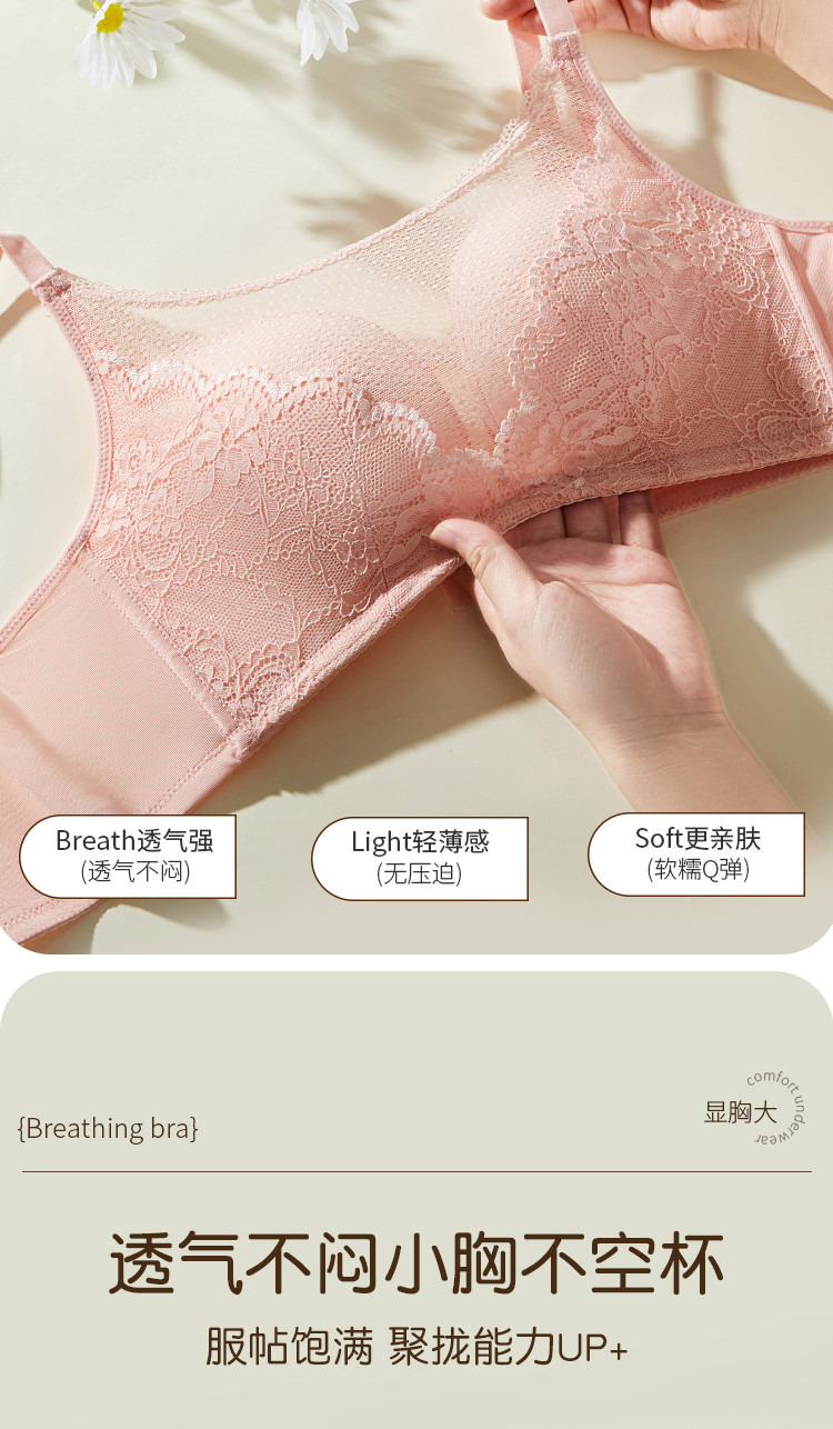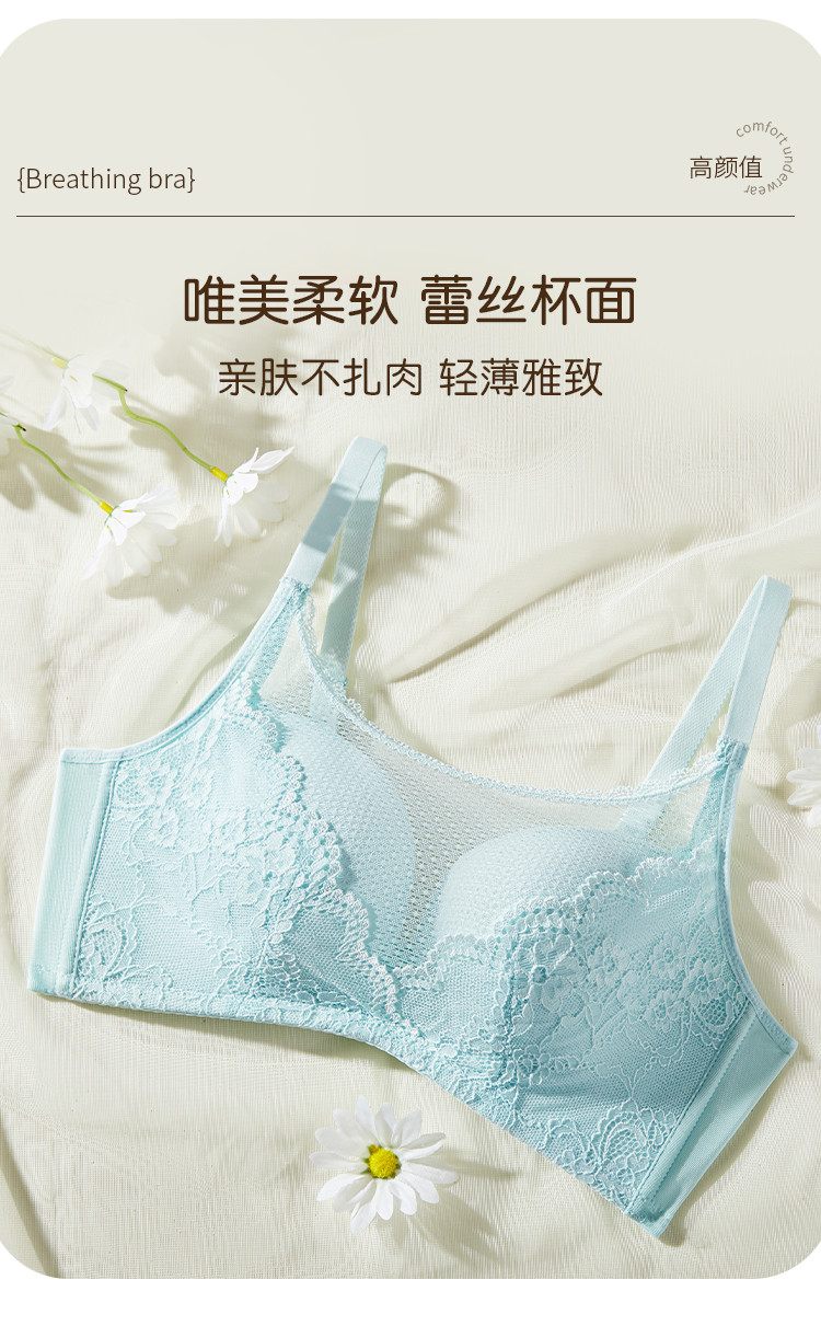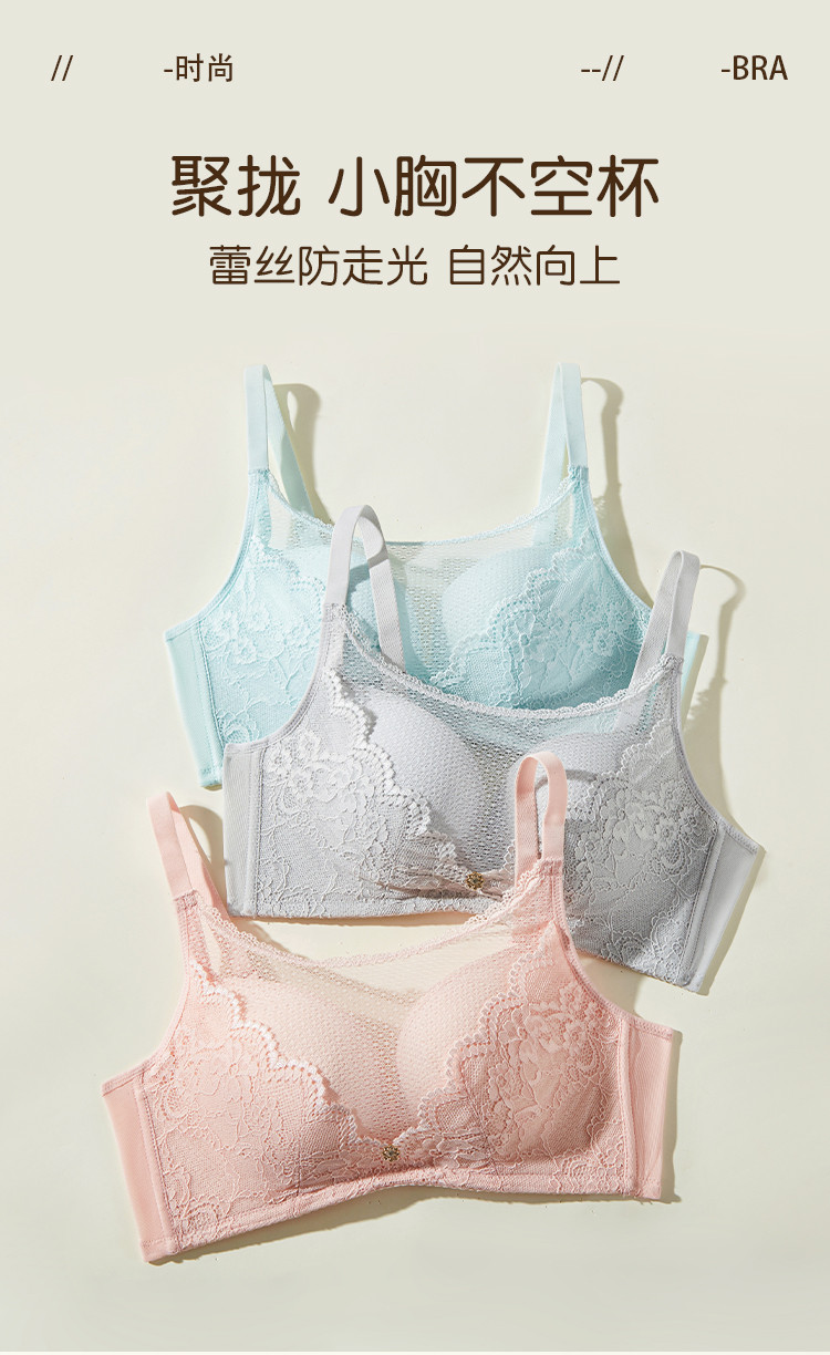 商品名称:精致蕾丝内衣女上薄下厚聚拢侧收无钢圈抹胸防走光文胸罩 154379