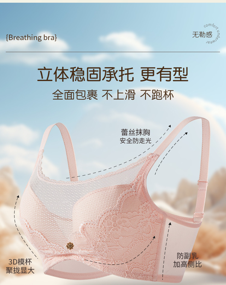 精致蕾丝内衣女上薄下厚聚拢侧收无钢圈抹胸防走光文胸罩 154379