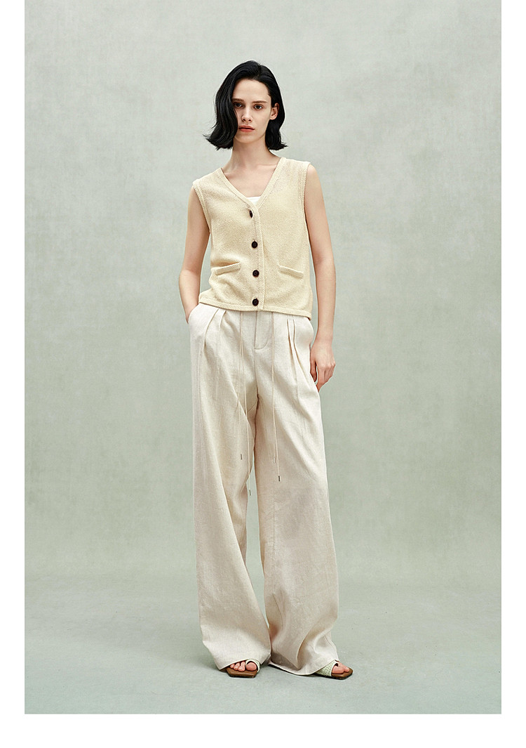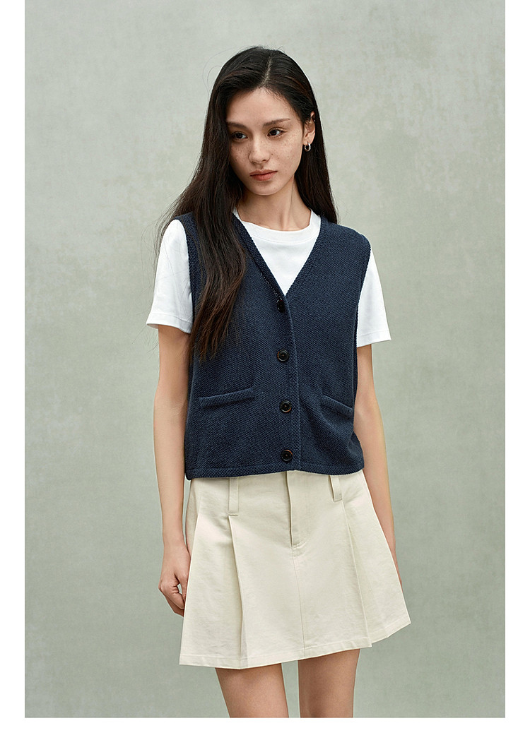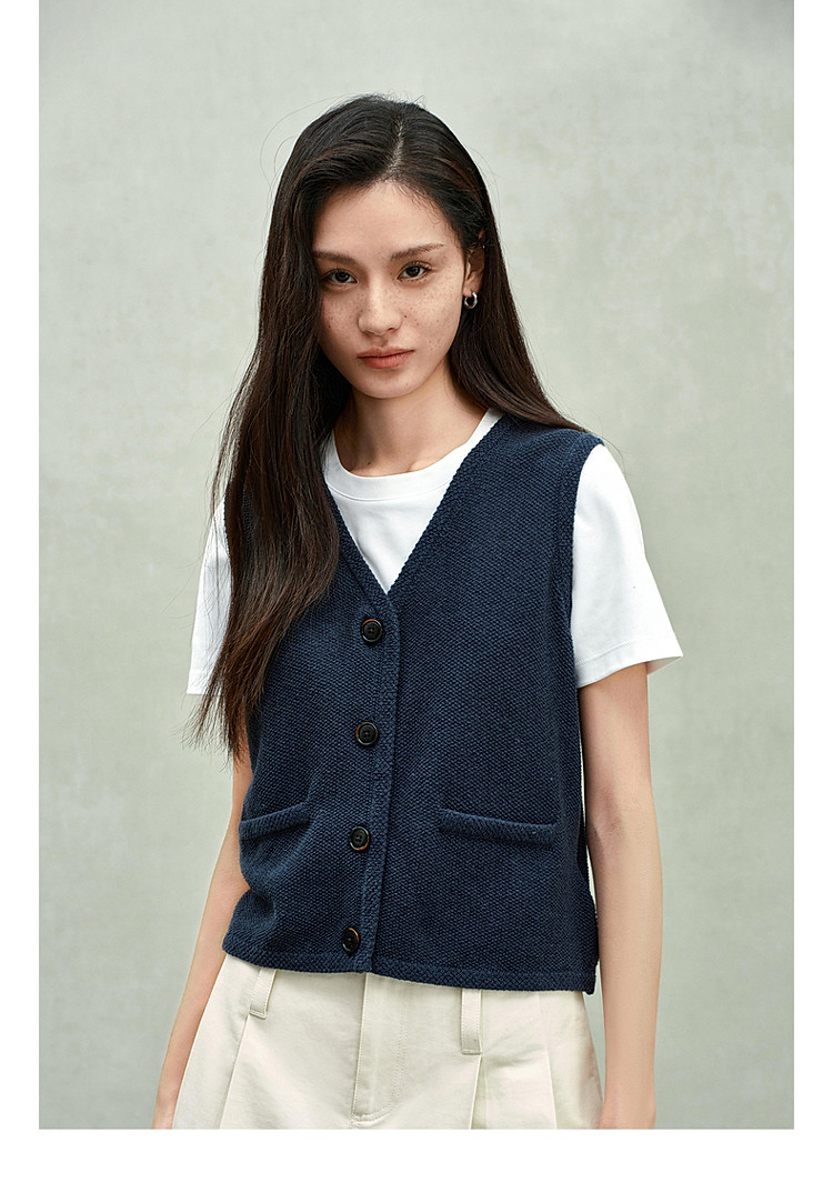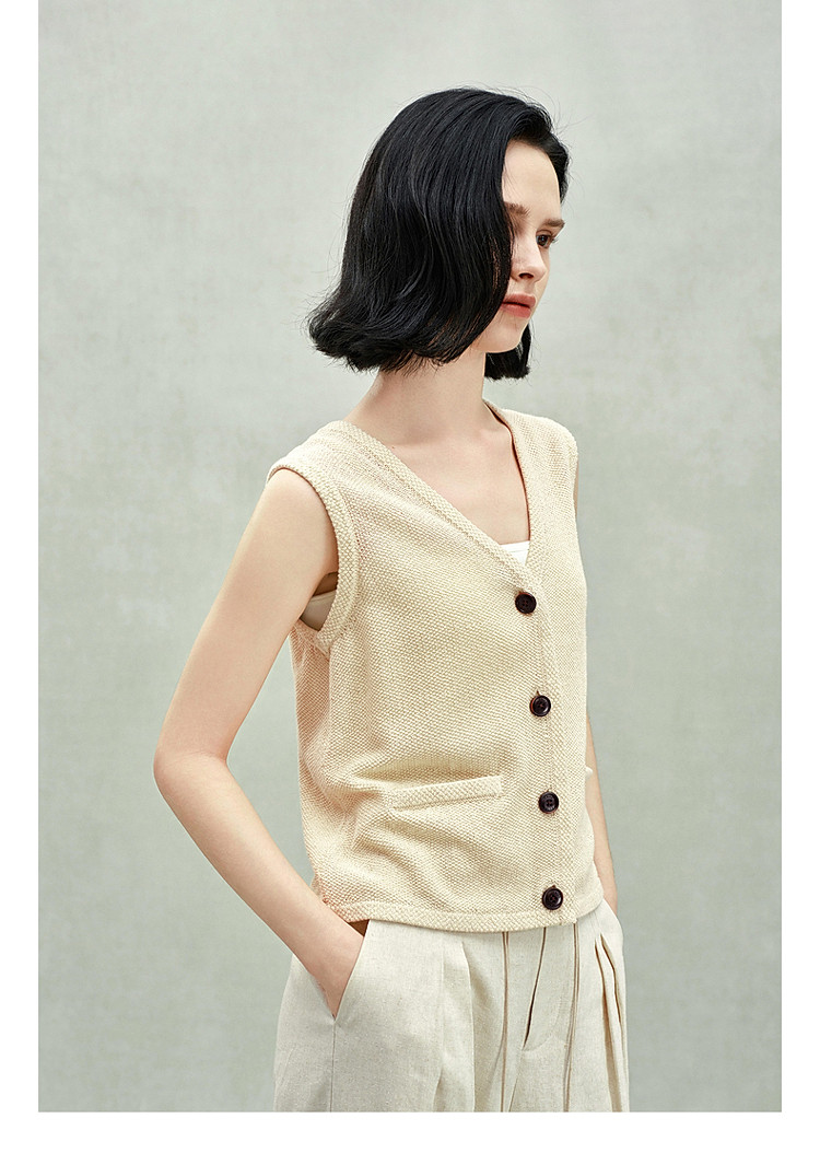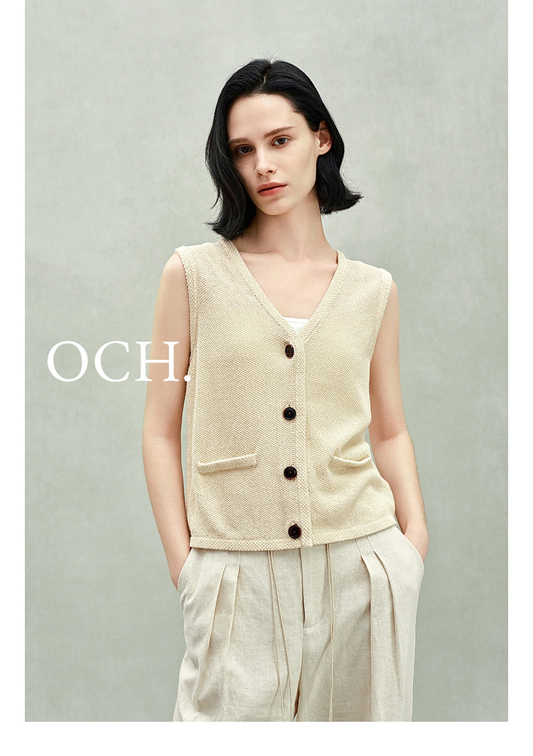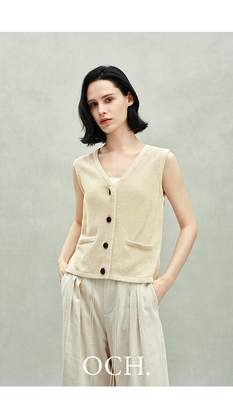 限定系列OCH.春装 小香风亚麻棉V领上衣针织马甲外套女 174543
