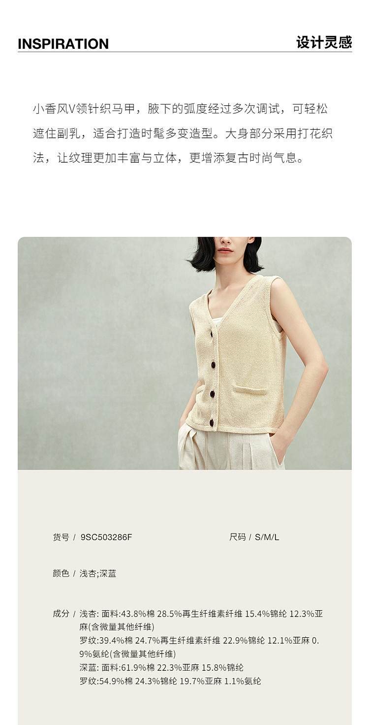 商品名称:限定系列OCH.春装 小香风亚麻棉V领上衣针织马甲外套女 174543