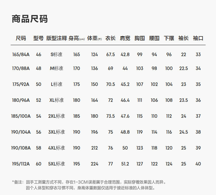 | 尺码 | 衣长(cm) | 肩宽(cm) | 腰围(cm) | 袖长(cm) | 胸围(cm) | 下摆围(cm) | 号型 |