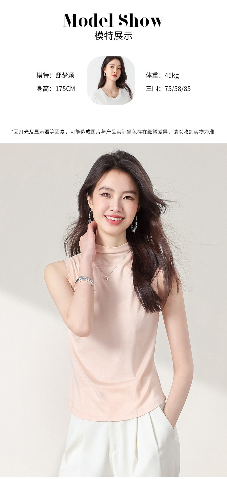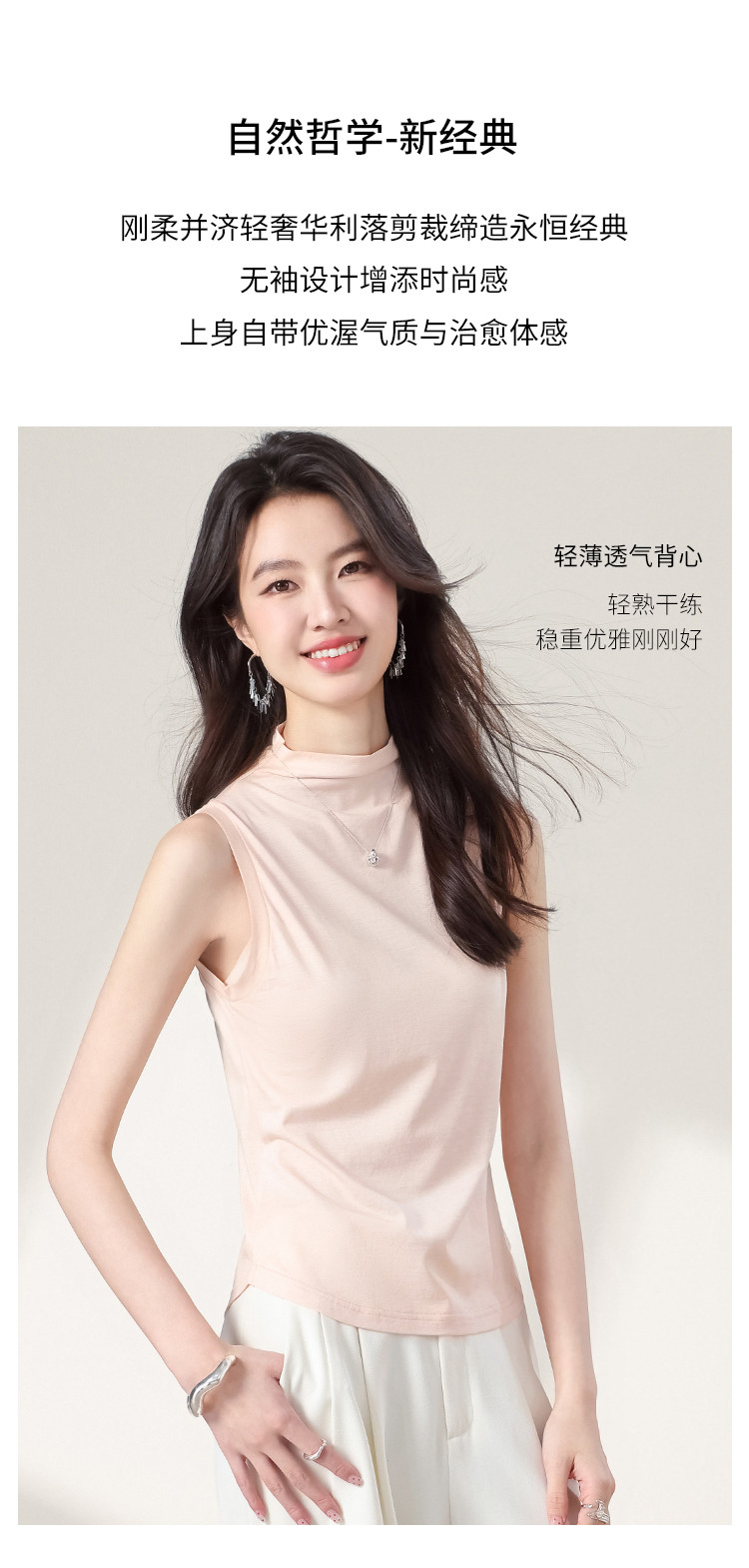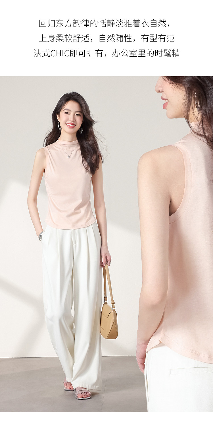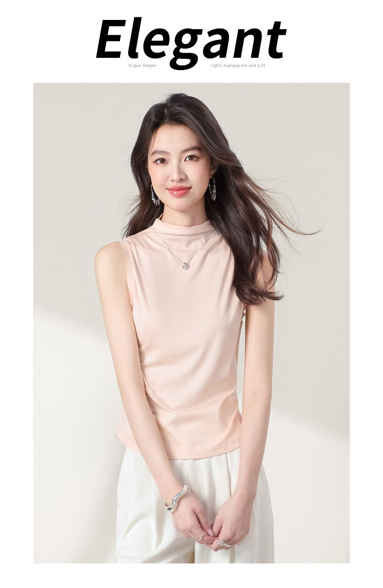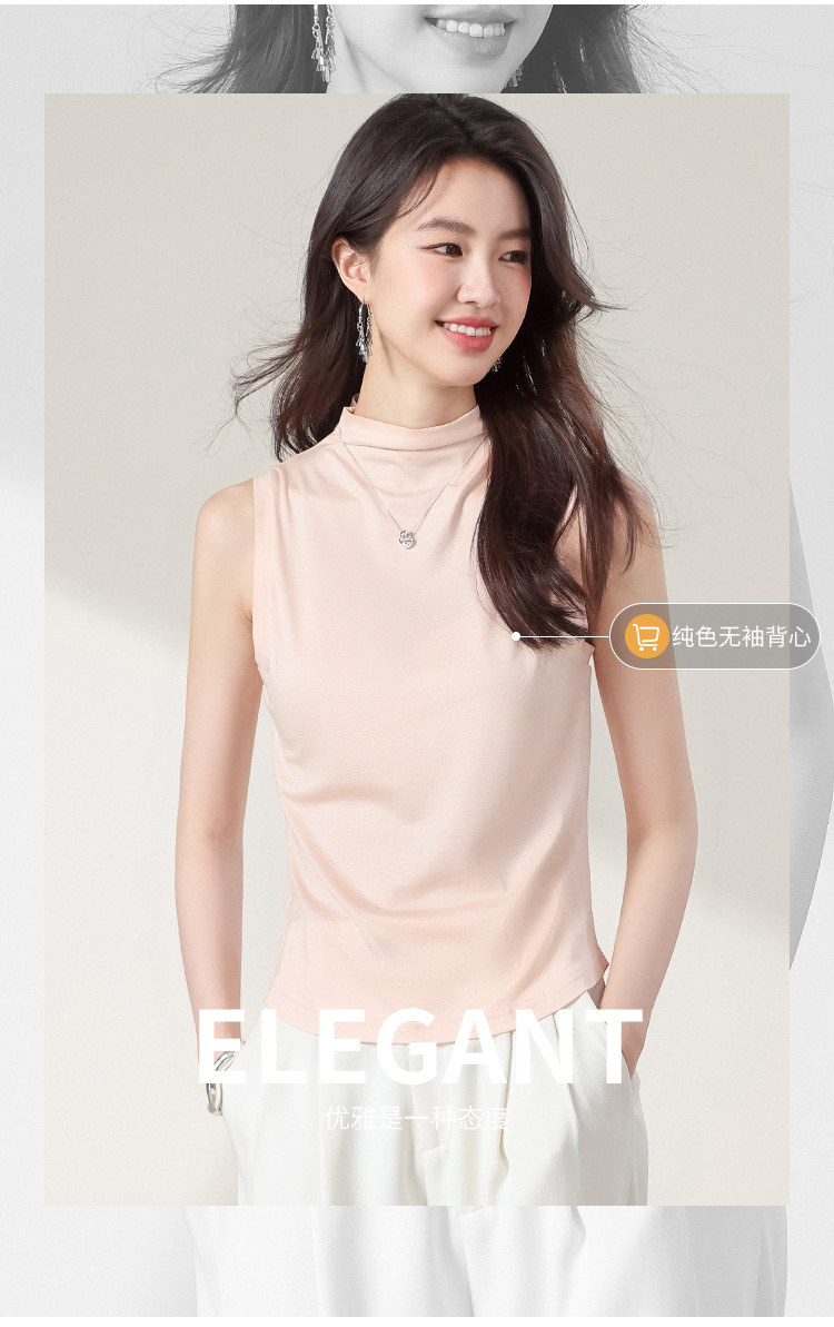 商品名称:【含桑蚕丝】透气百搭纯色无袖舒适休闲坎肩背心女气质女式T恤 374611