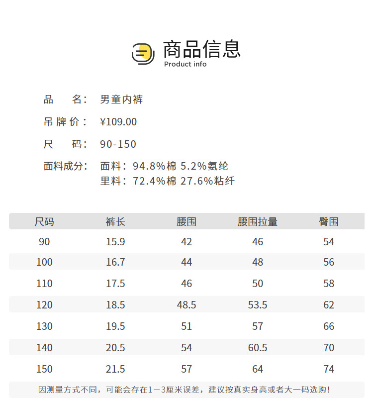 | 尺码 | 身高(cm) | 腰围(cm) | 裤长(cm) | 臀围(cm) | 适合年龄 | 号型 |