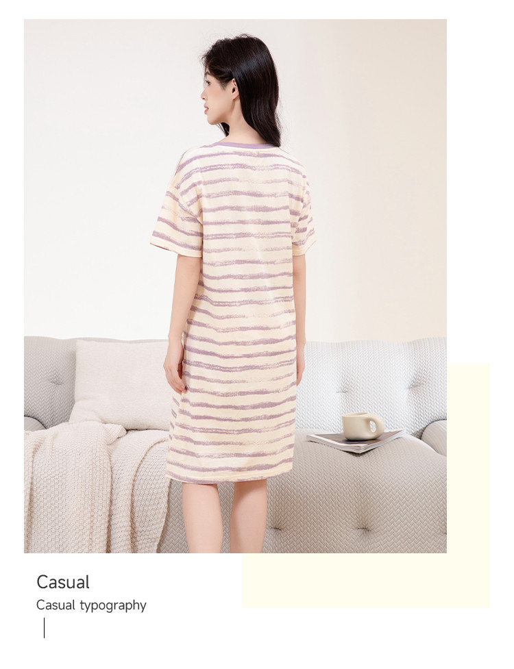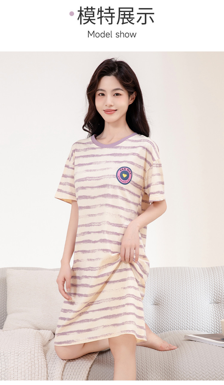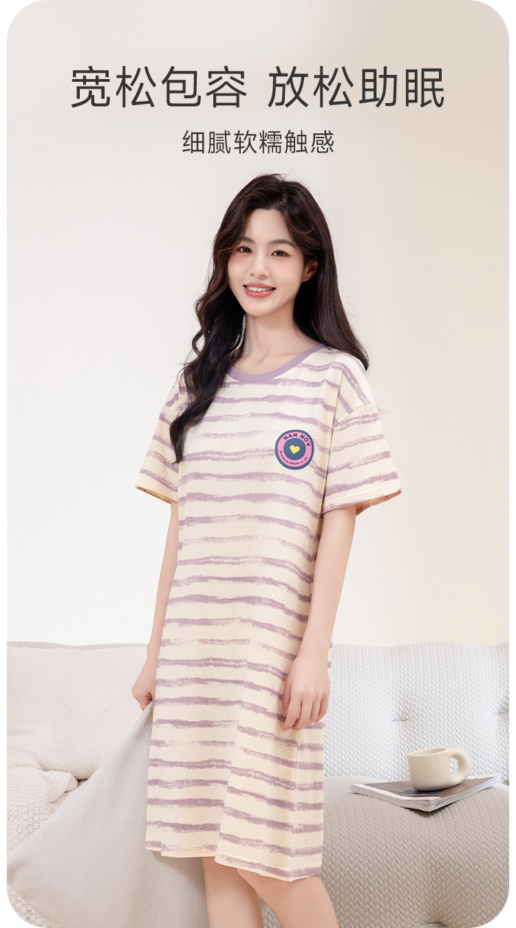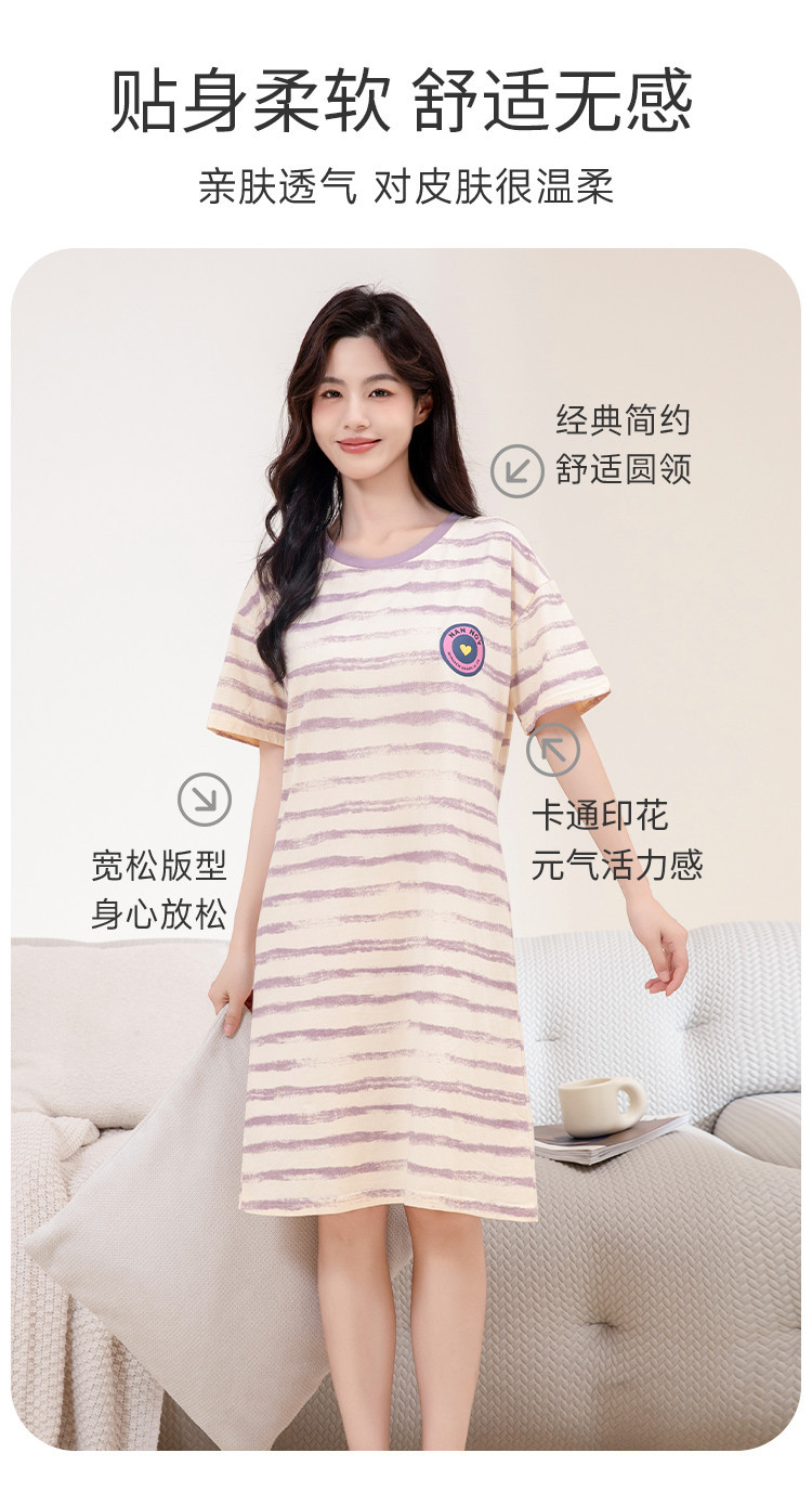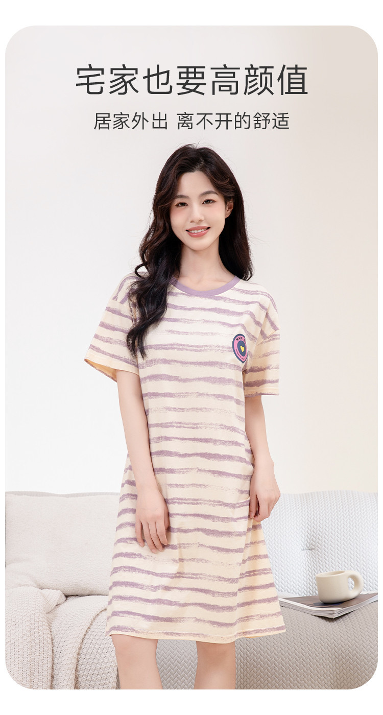 商品名称:【100%棉】女士全棉家居服睡裙可外穿印花长纯棉睡衣连衣裙女 407691