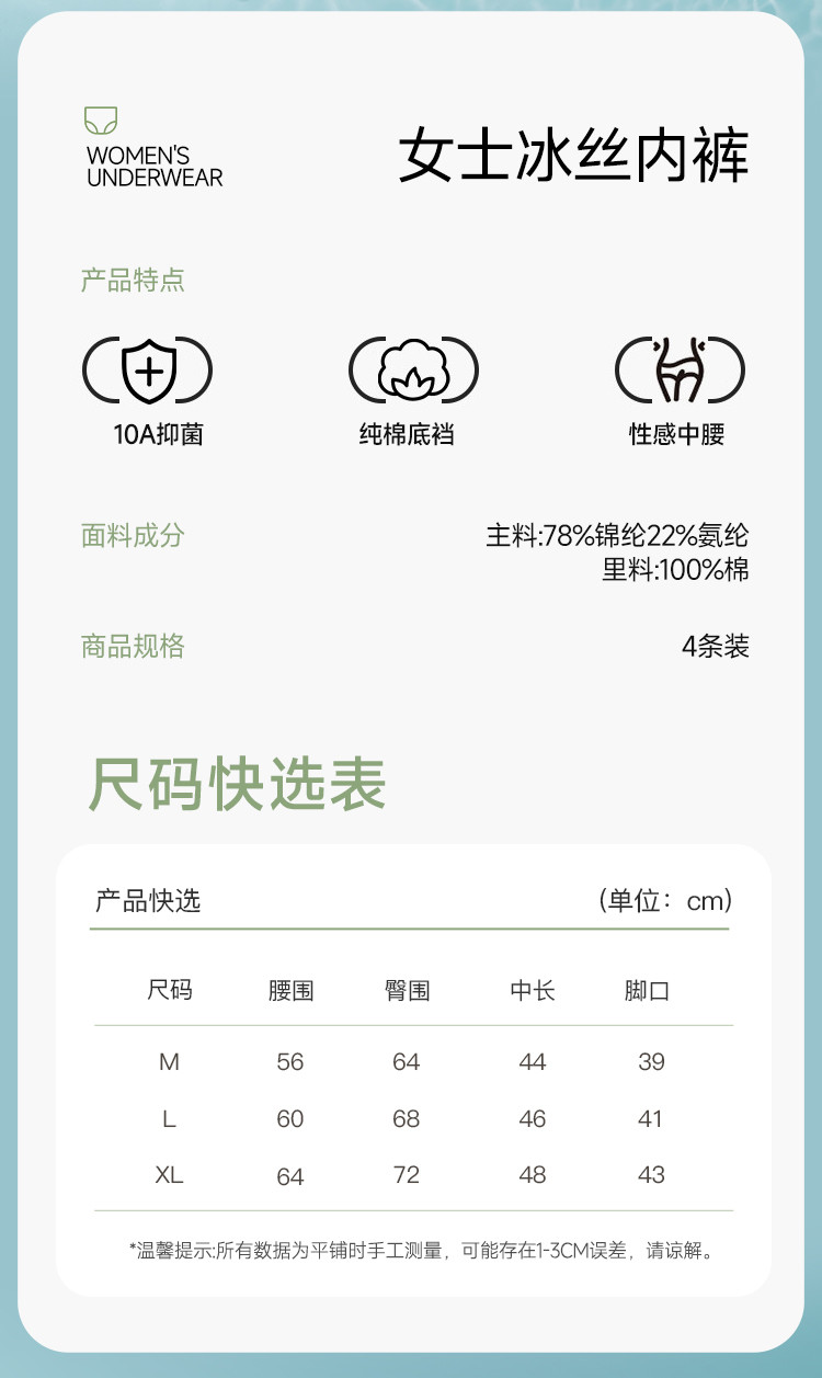 商品名称:【10A抑菌奶皮裤】无痕超薄冰丝女士内裤100%纯棉裆不夹臀 627211