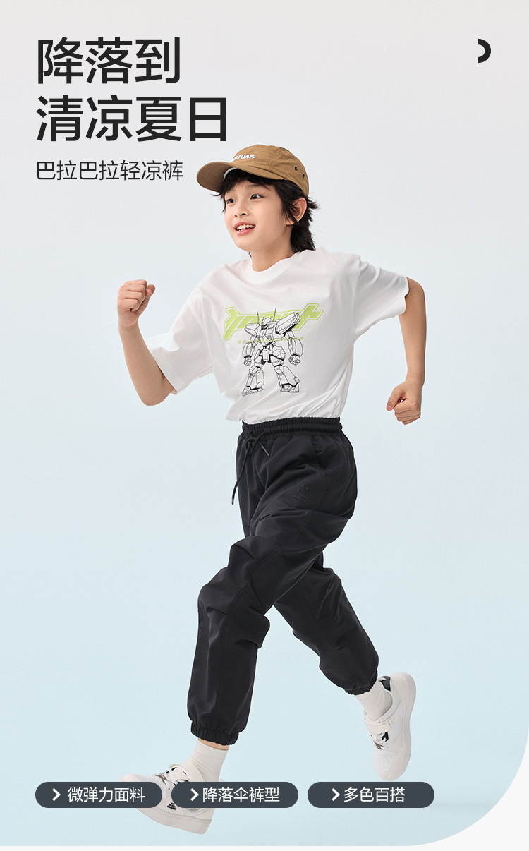 商品名称:弹力亲肤童装儿童裤子男童女童2025夏季宽松裤子斜纹休闲长裤 582981