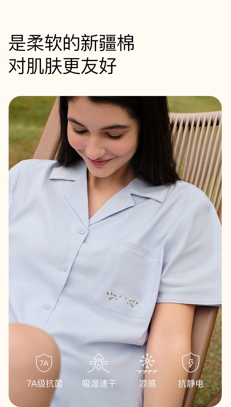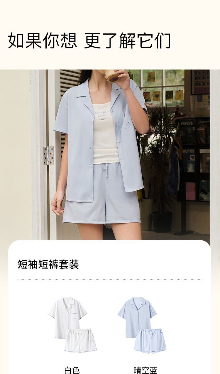 商品名称:【7A抗菌凉感】新款翻领短袖短裤睡衣高级感家居服套装女夏季 055744