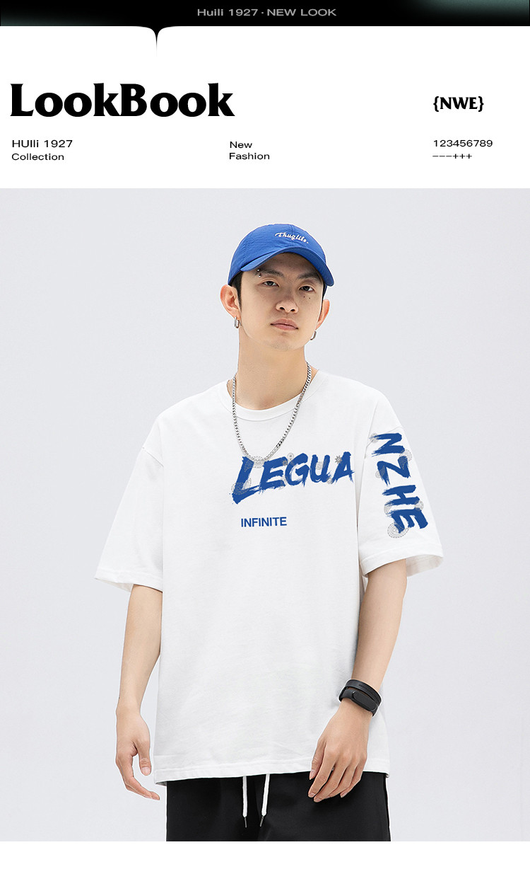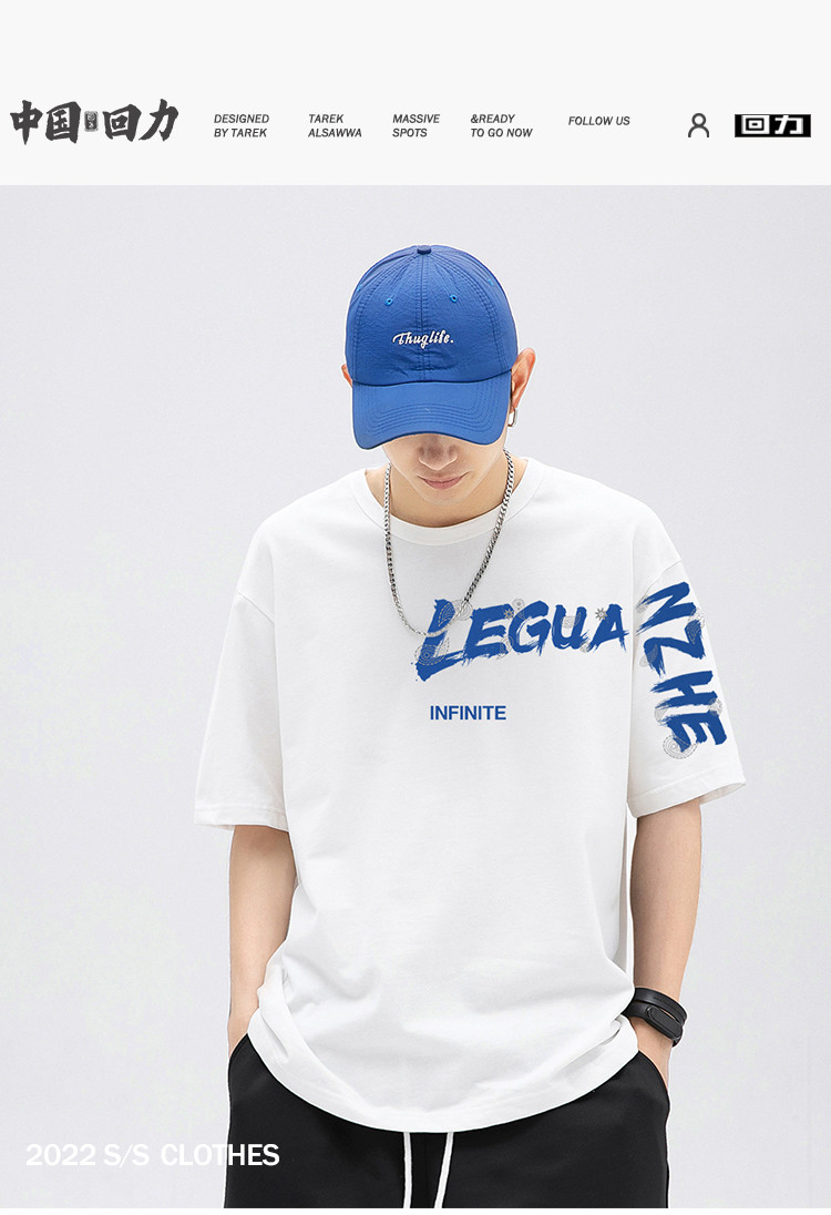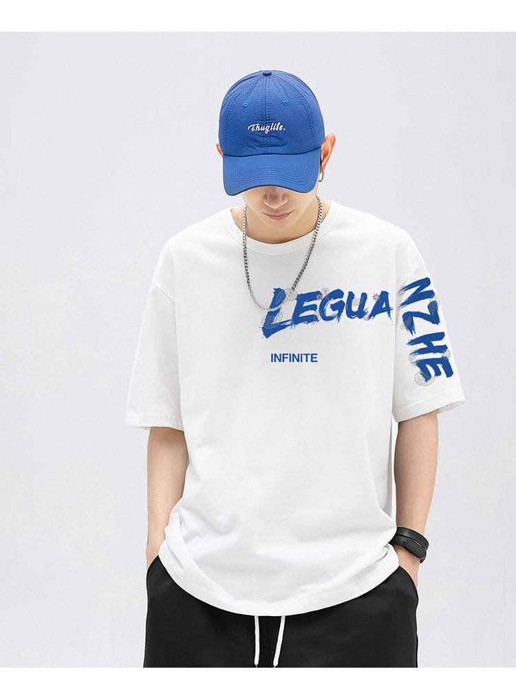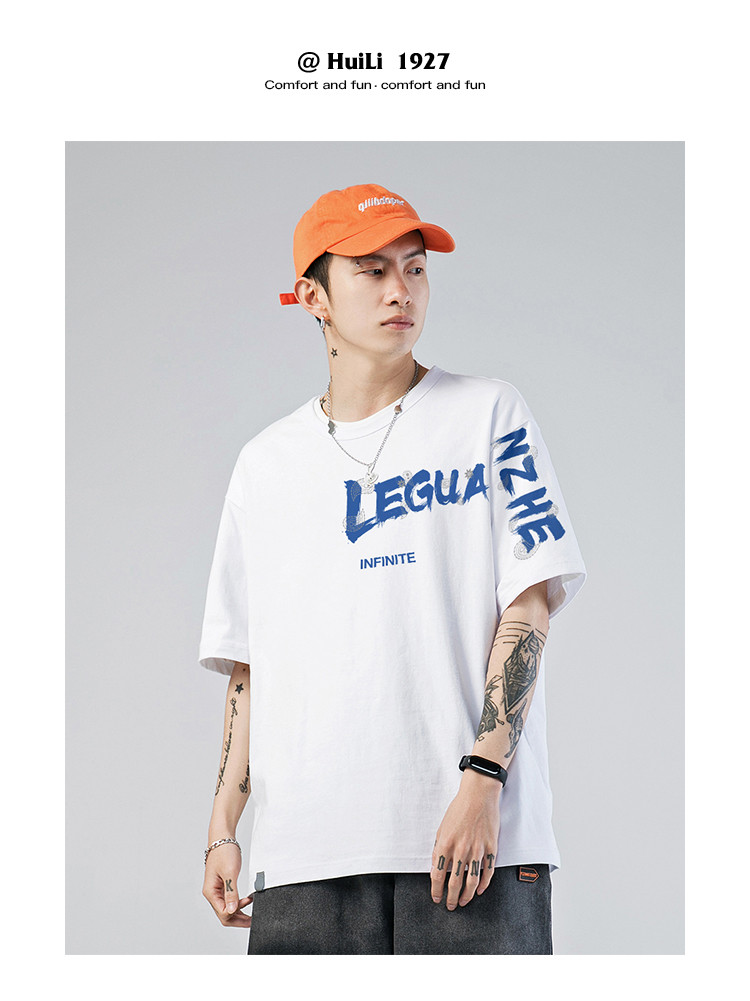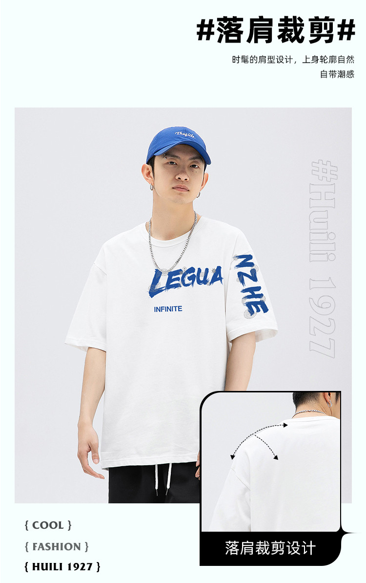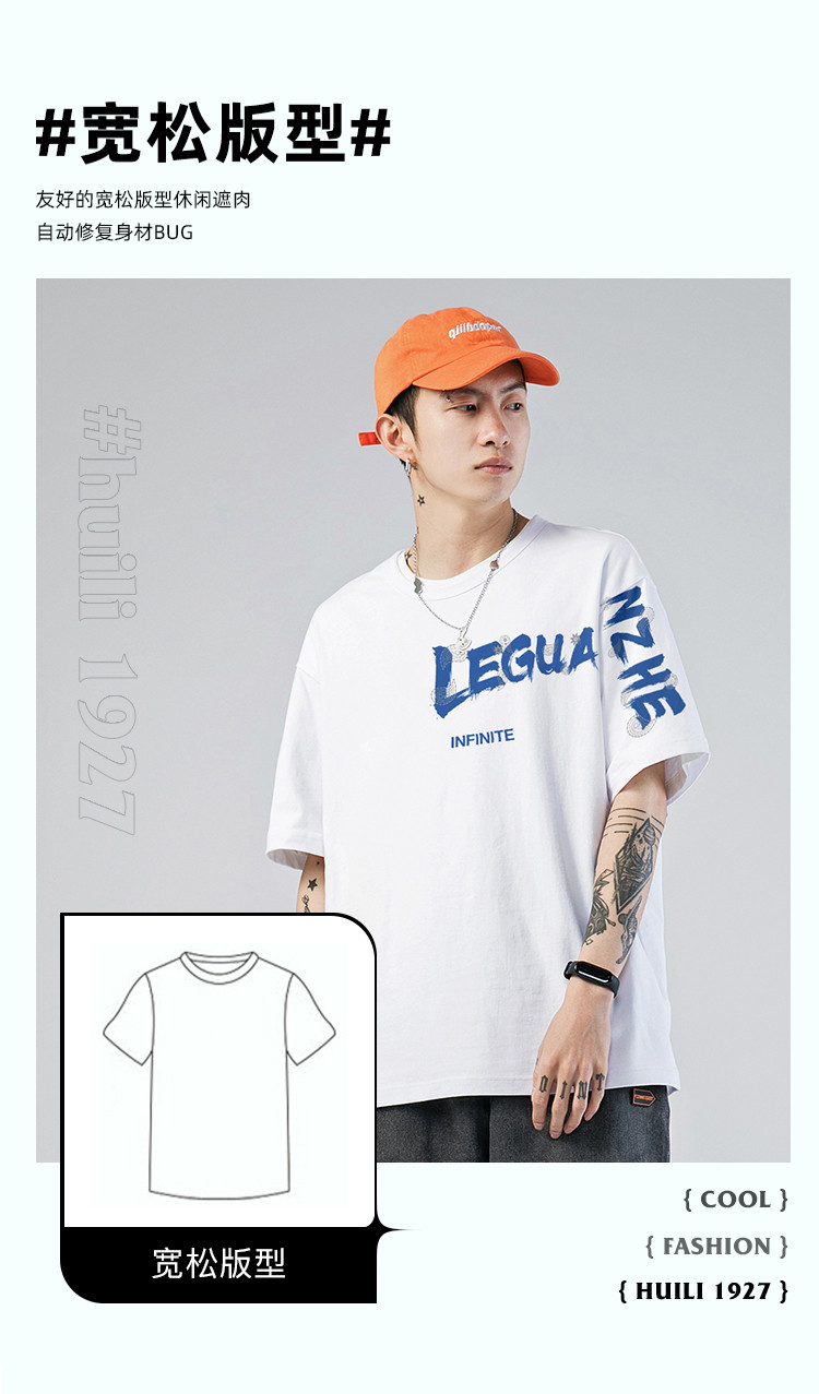 商品名称:短袖T恤男士夏季薄款潮牌潮流宽松休闲情侣纯棉五分半袖圆领体恤 673107
