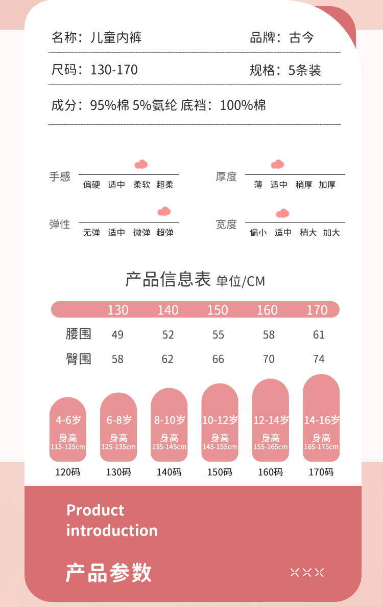 商品名称:【95%棉7A抑菌】女童内裤5条装儿童内裤女宝宝短裤三角裤 584715
