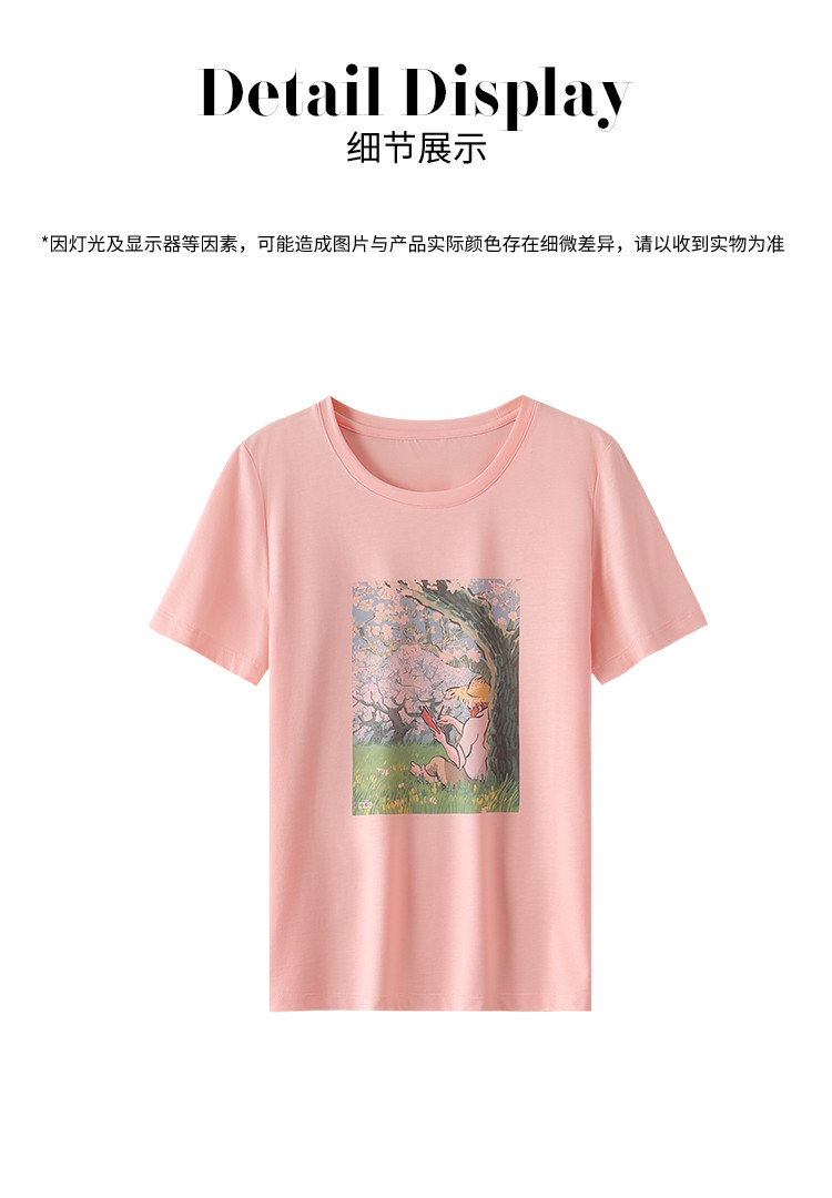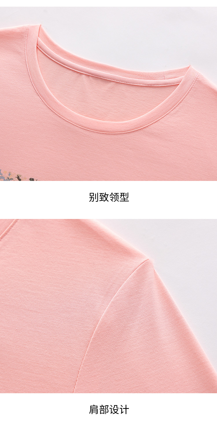 商品名称:【含桑蚕丝】圆领气质外穿短袖时尚印花女式T恤高级感春夏上衣 950227