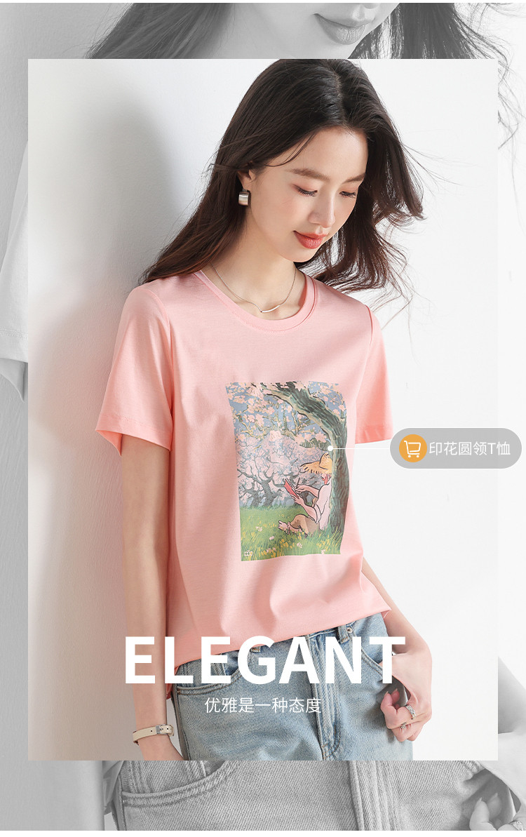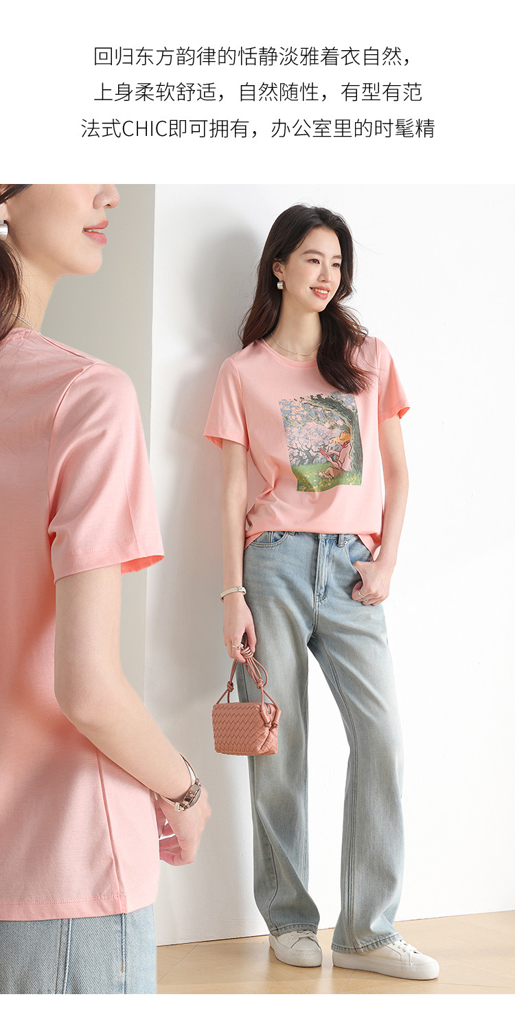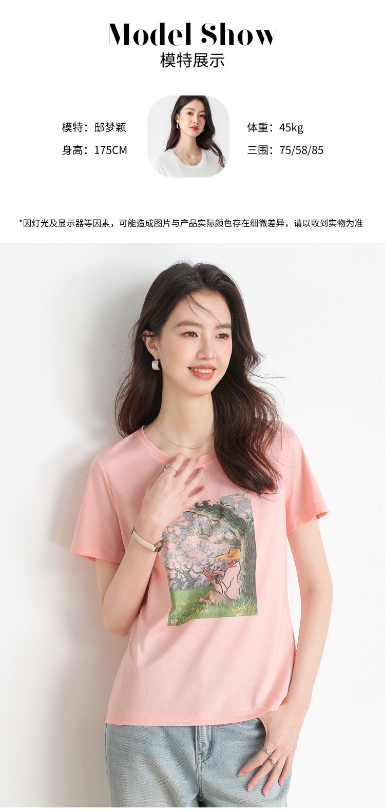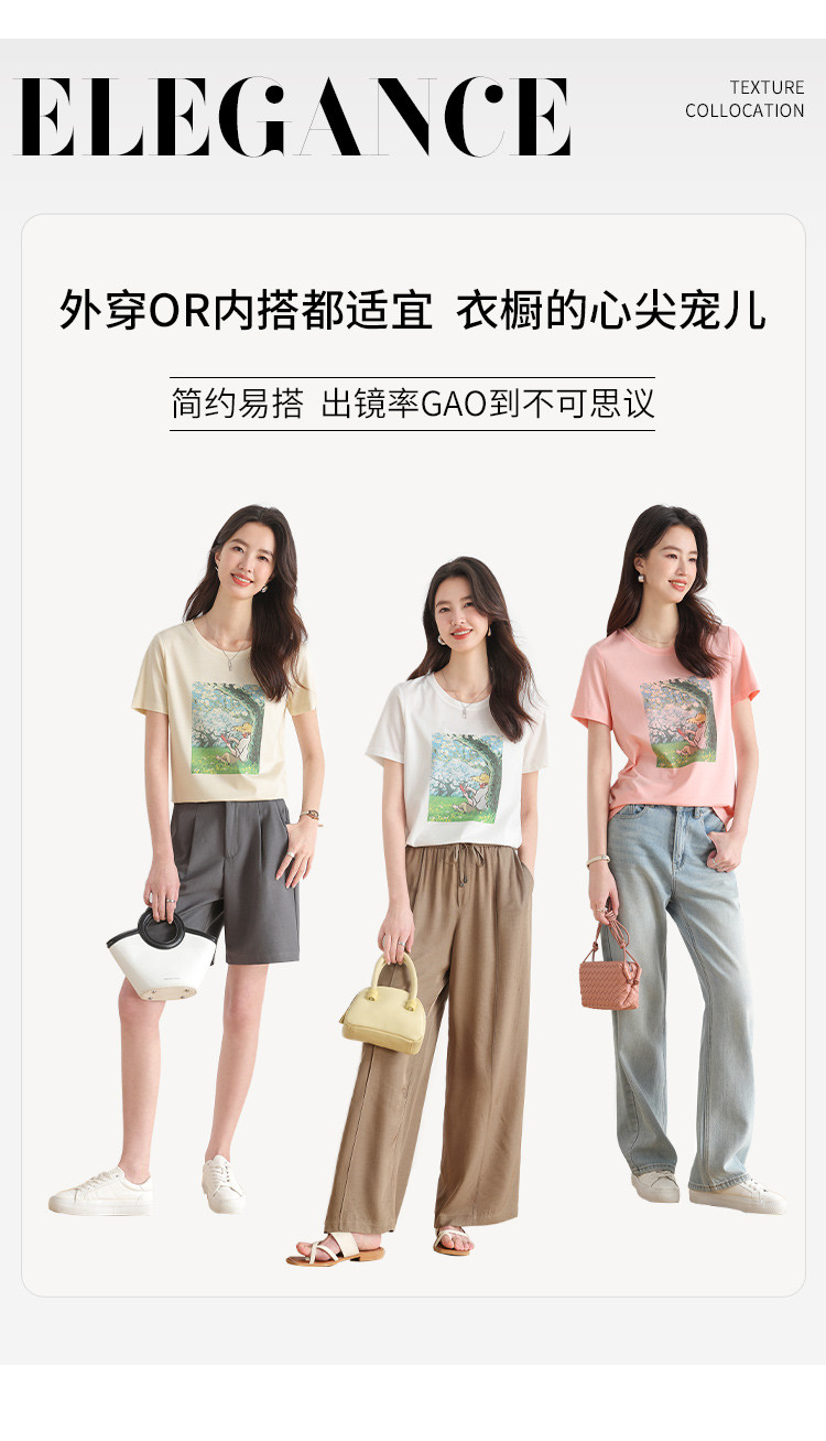【含桑蚕丝】圆领气质外穿短袖时尚印花女式T恤高级感春夏上衣 950227