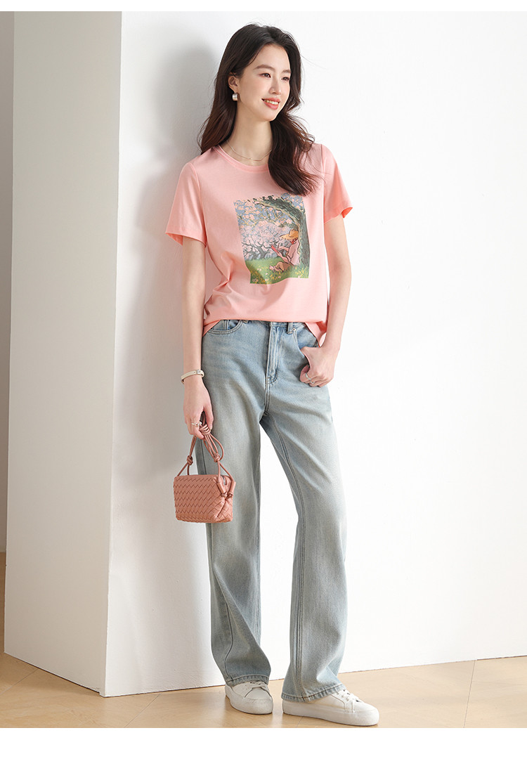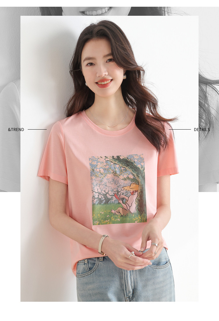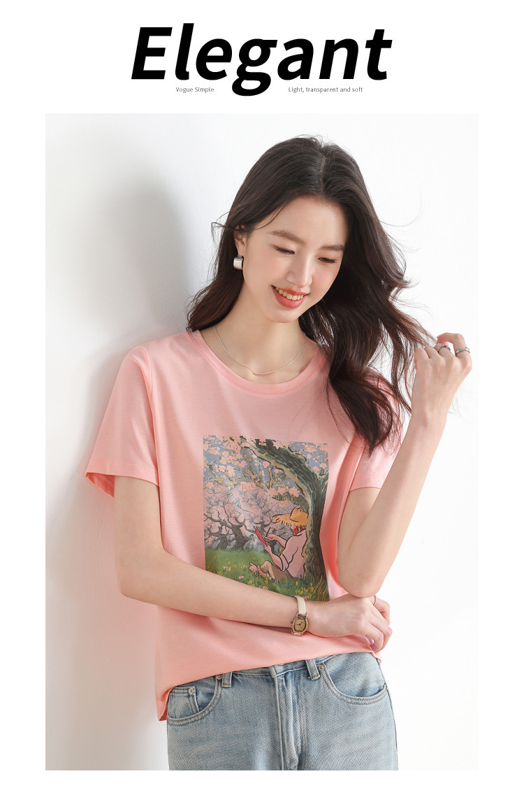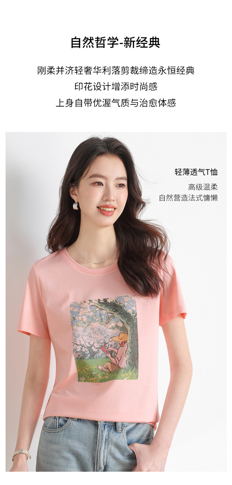 【含桑蚕丝】圆领气质外穿短袖时尚印花女式T恤高级感春夏上衣 950227