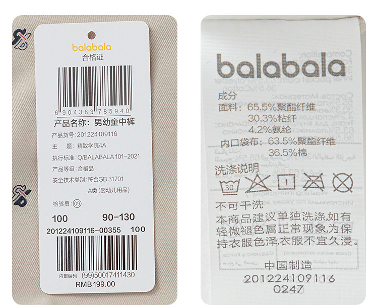 商品名称:巴拉巴拉童装男童背带裤儿童裤子凉感抑菌夏季小童满印中裤时尚潮 901253