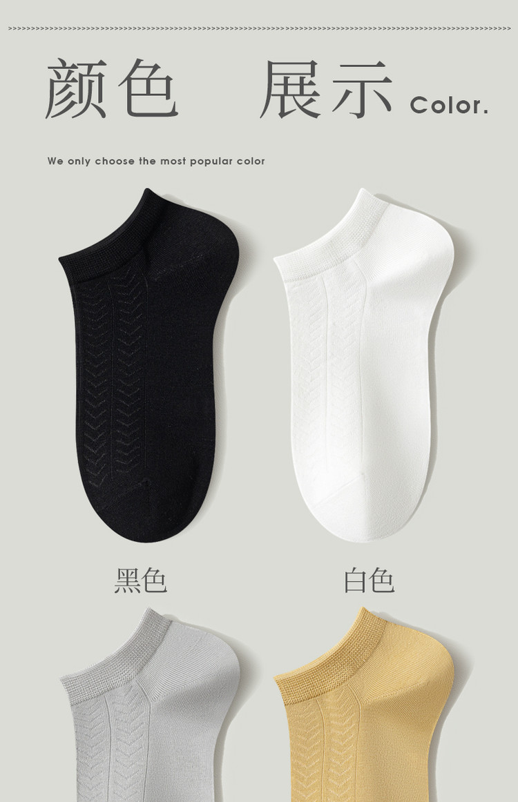 商品名称:【经典纯色】5双装夏季防臭吸汗无骨缝青少年高中生男士运动船袜 640843