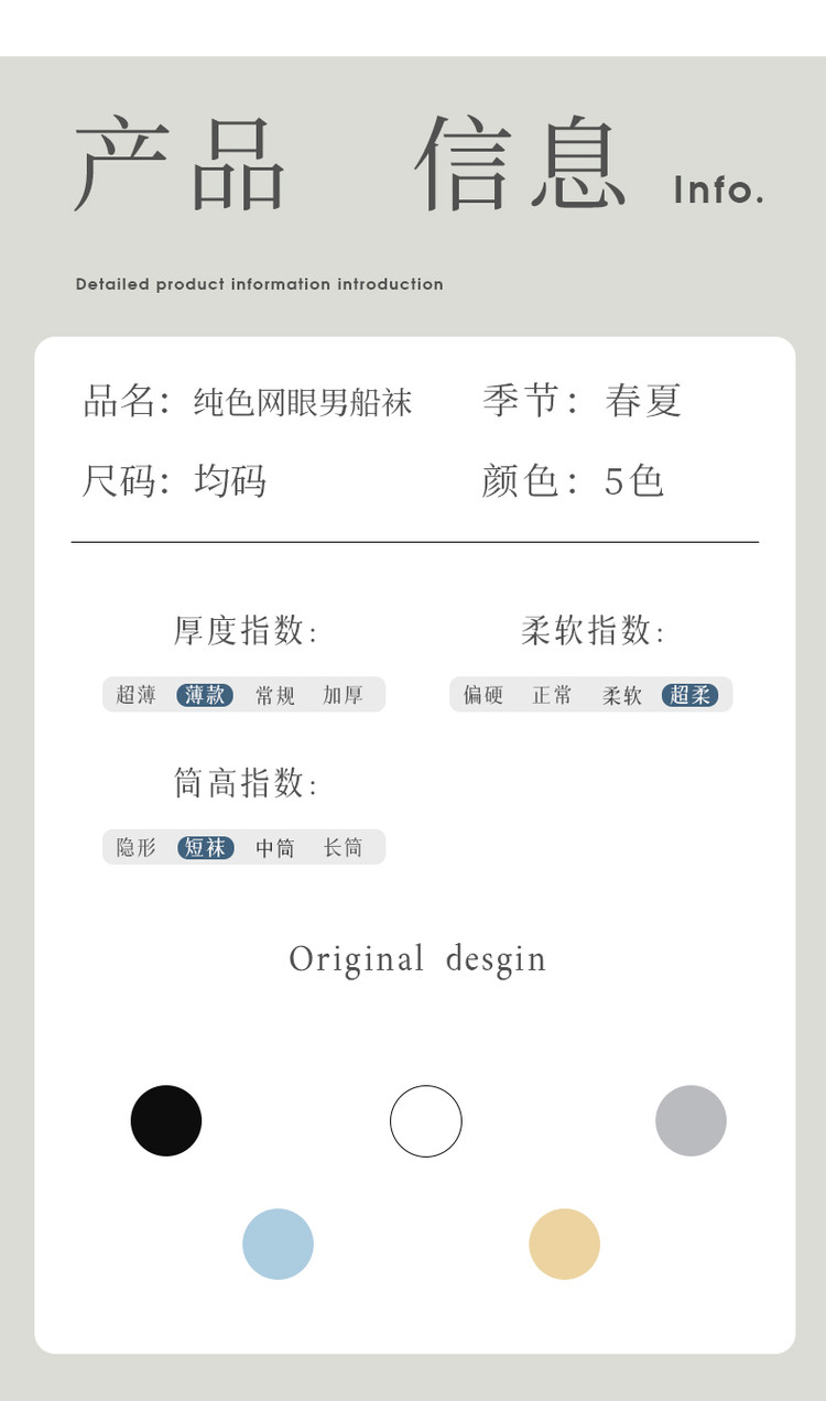 混色5双装【黑色*1黄色*1浅蓝*1浅灰*1白色*1】