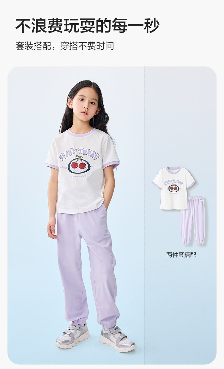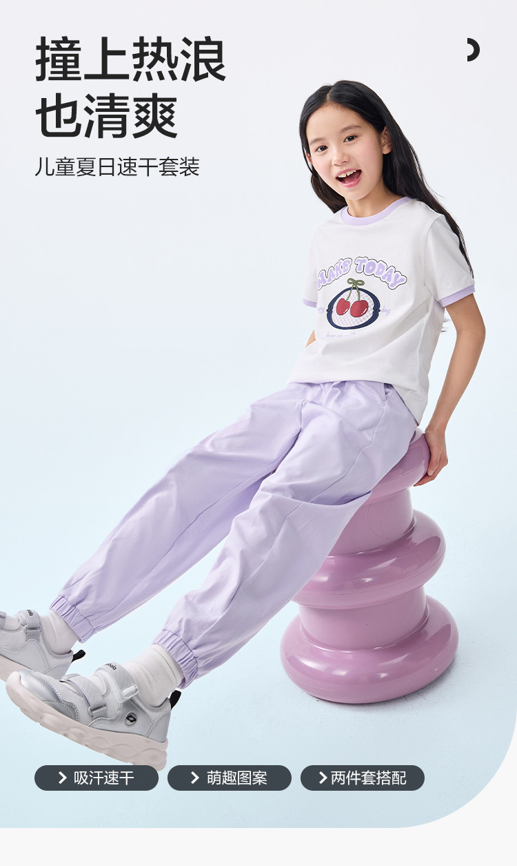 商品名称:吸湿速干童装儿童短袖套装女童2025夏款两件套速干长裤学院风 010501