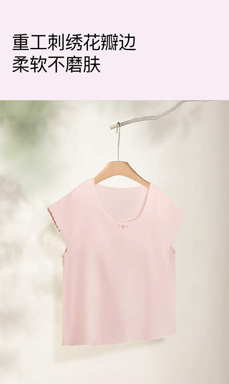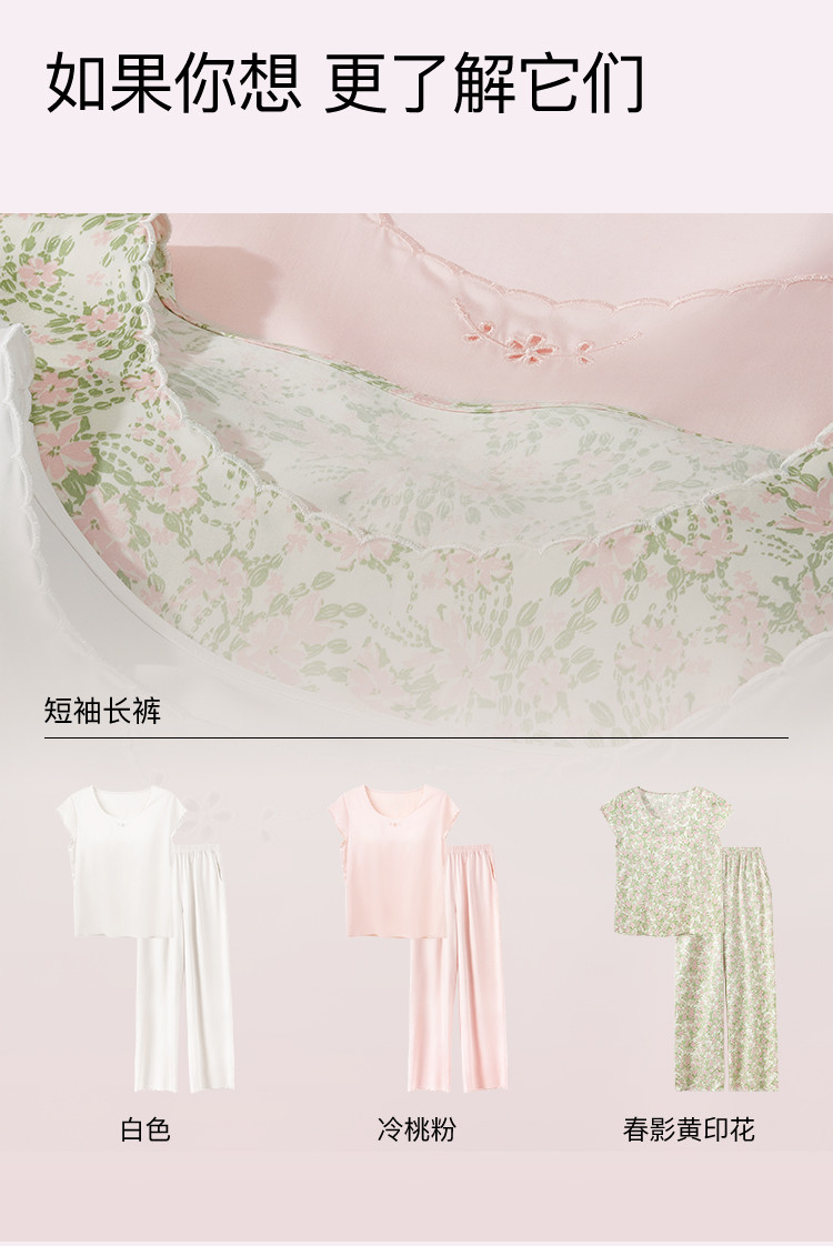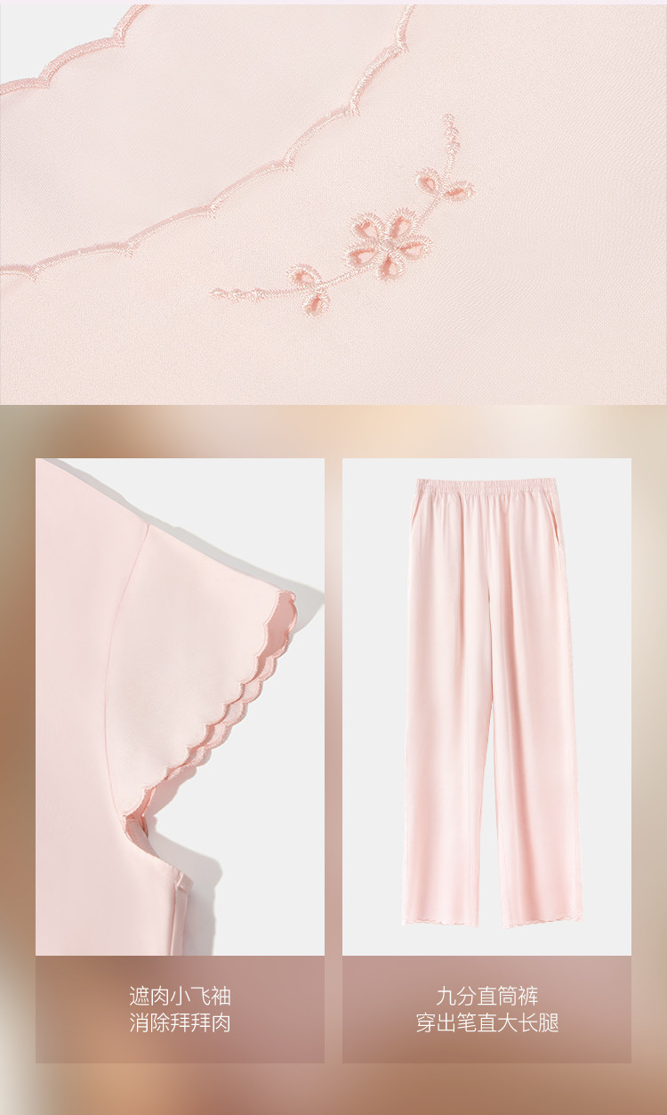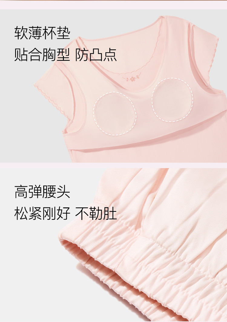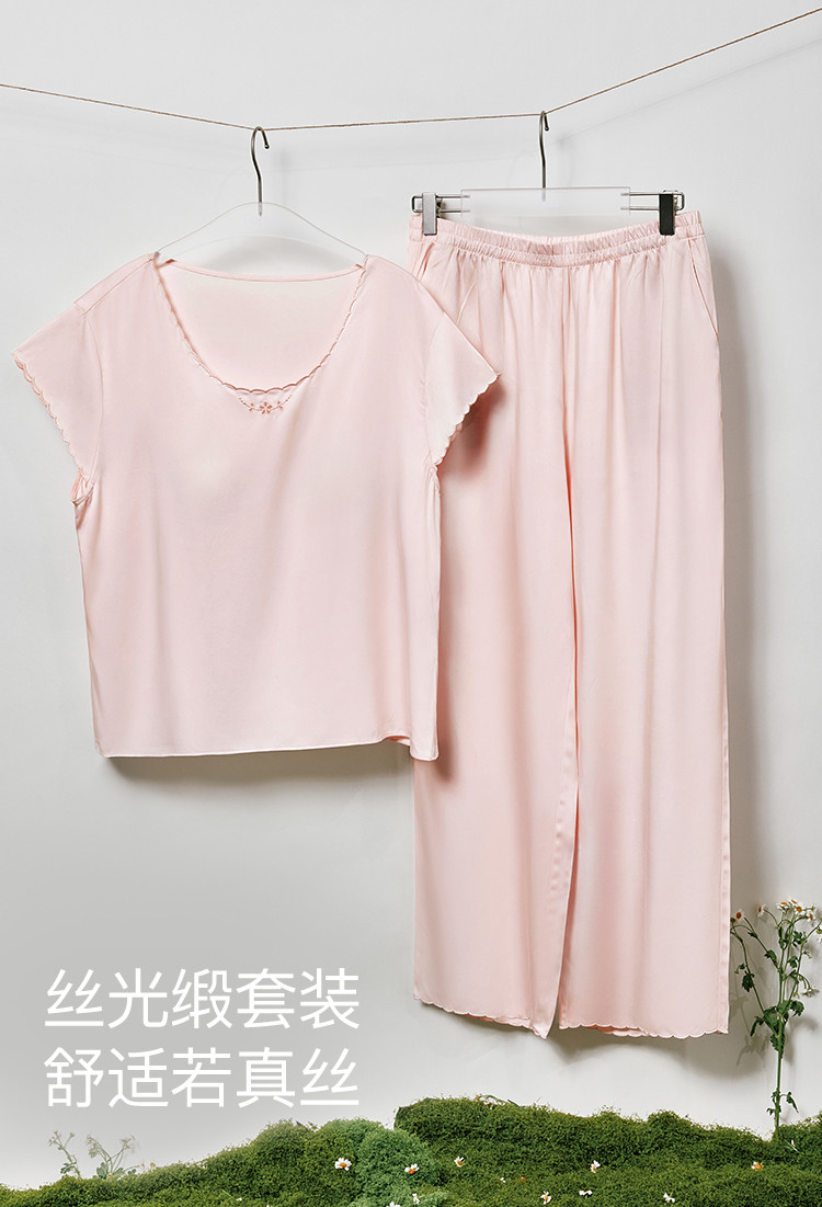 商品名称:【高级感光泽】25新款短袖长裤女士睡衣高弹带胸垫家居服夏季季 052736