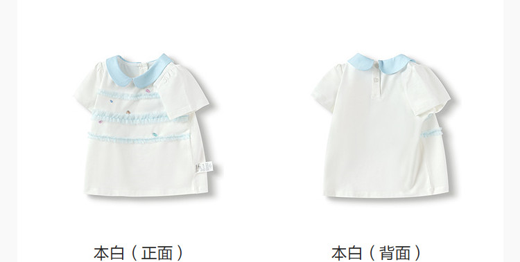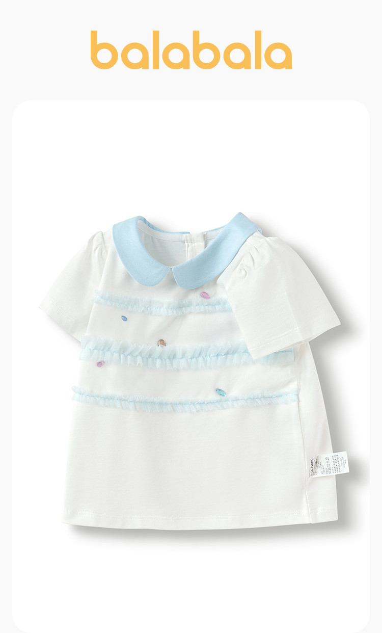 商品名称:巴拉巴拉童装儿童T恤女童短袖上衣可爱娃娃领夏装撞色网纱甜美潮 150725